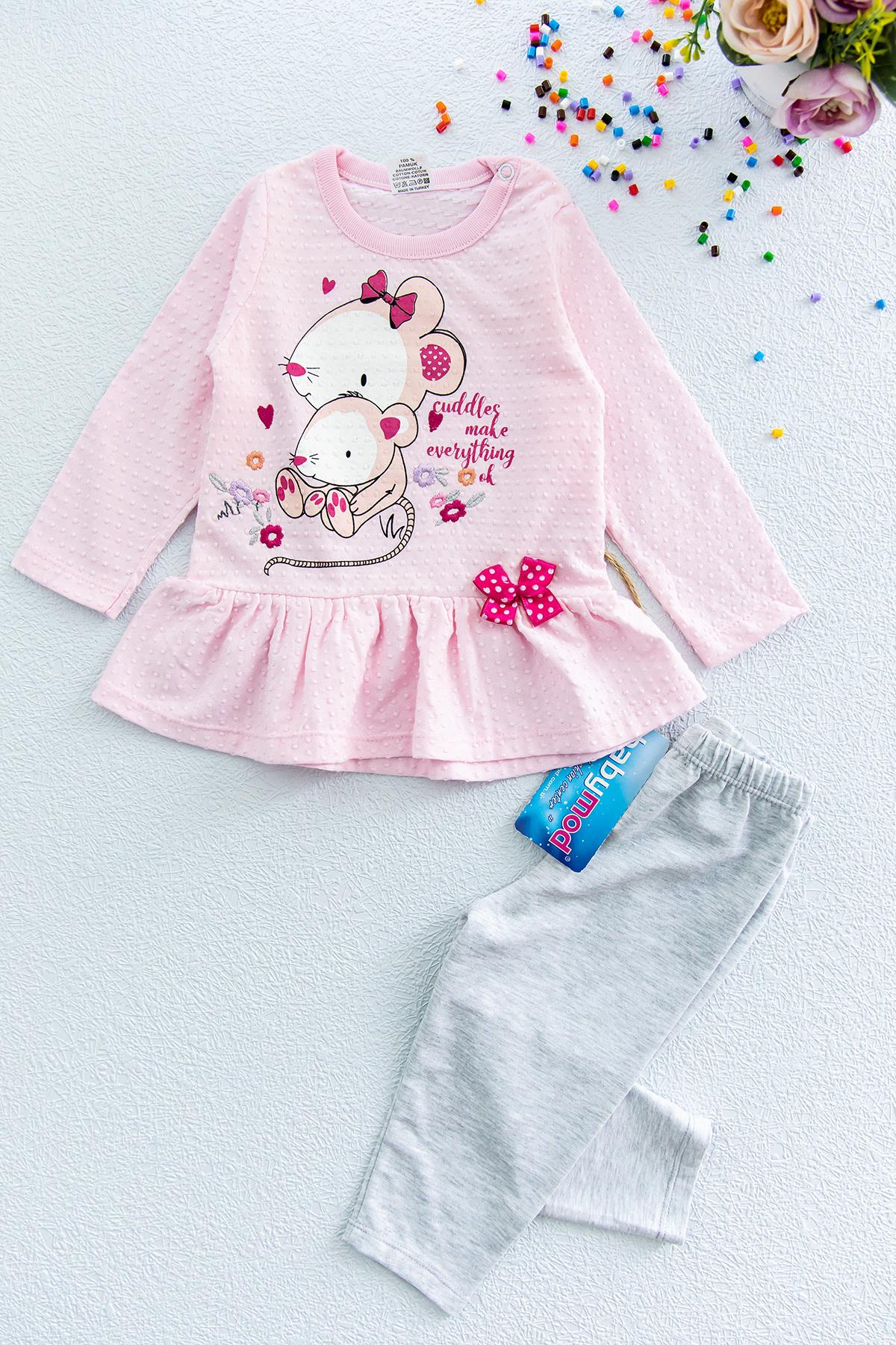 Fiyonk Süslemeli Kız Bebek İkili Bebek Takım