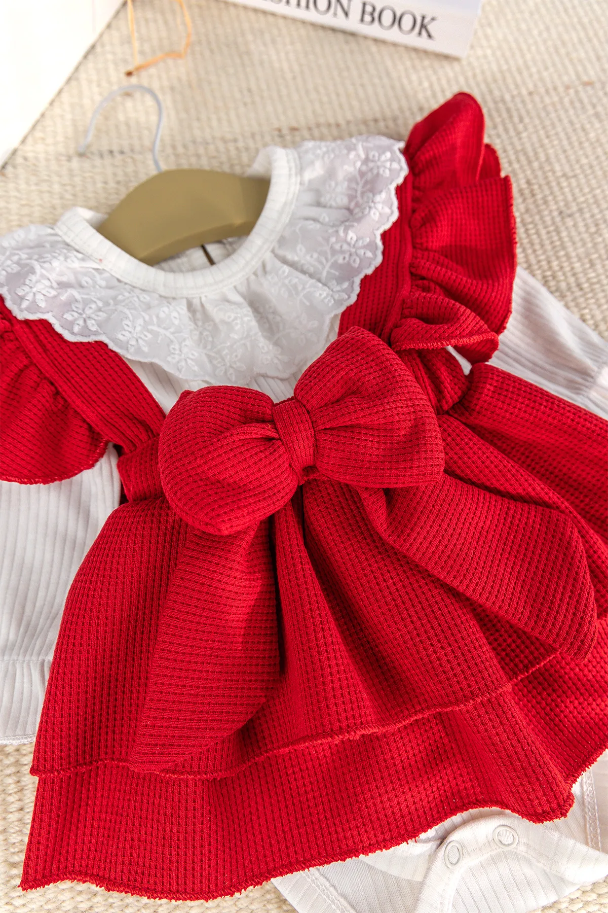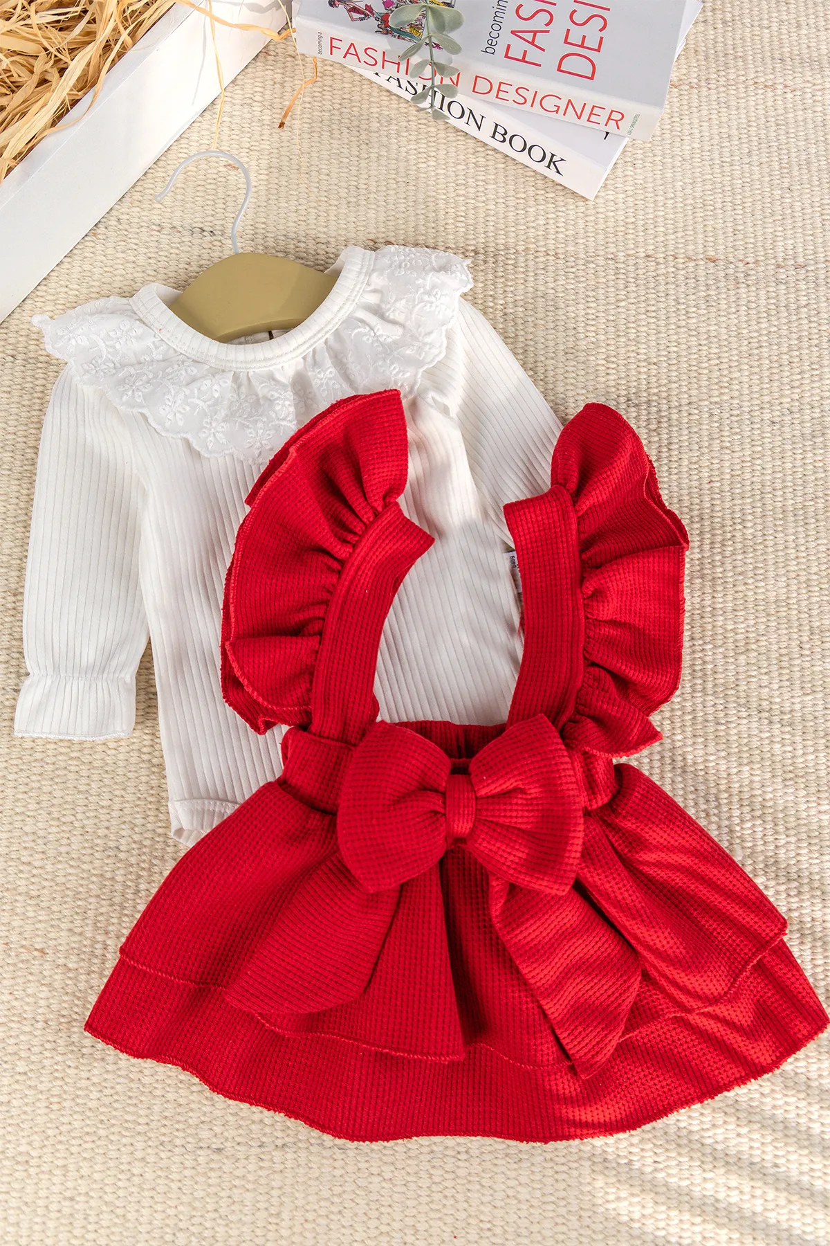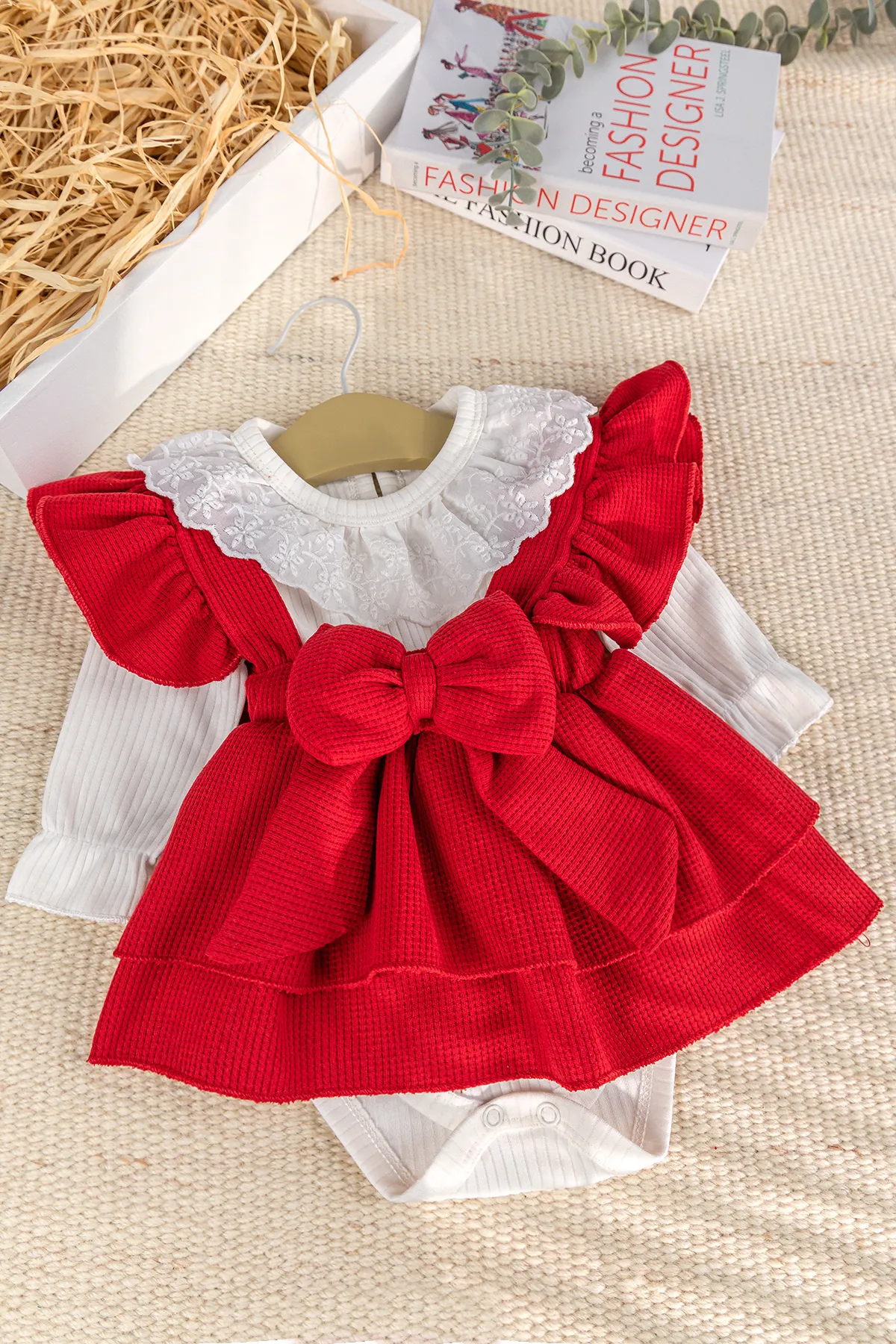 Fiyonklu 100% Pamuk Şık Kız Bebek Jile Etek Elbise