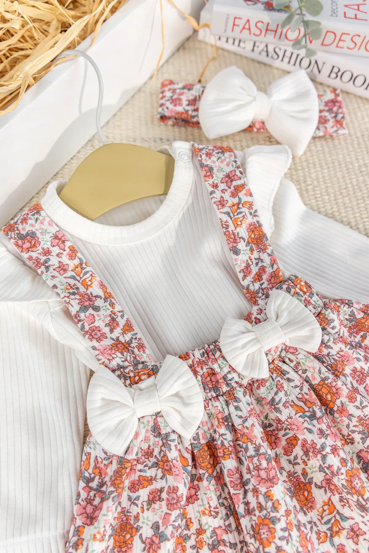 Fiyonklu Bandanalı 100% Pamuk Şık Kız Bebek Jile Etek Elbise
