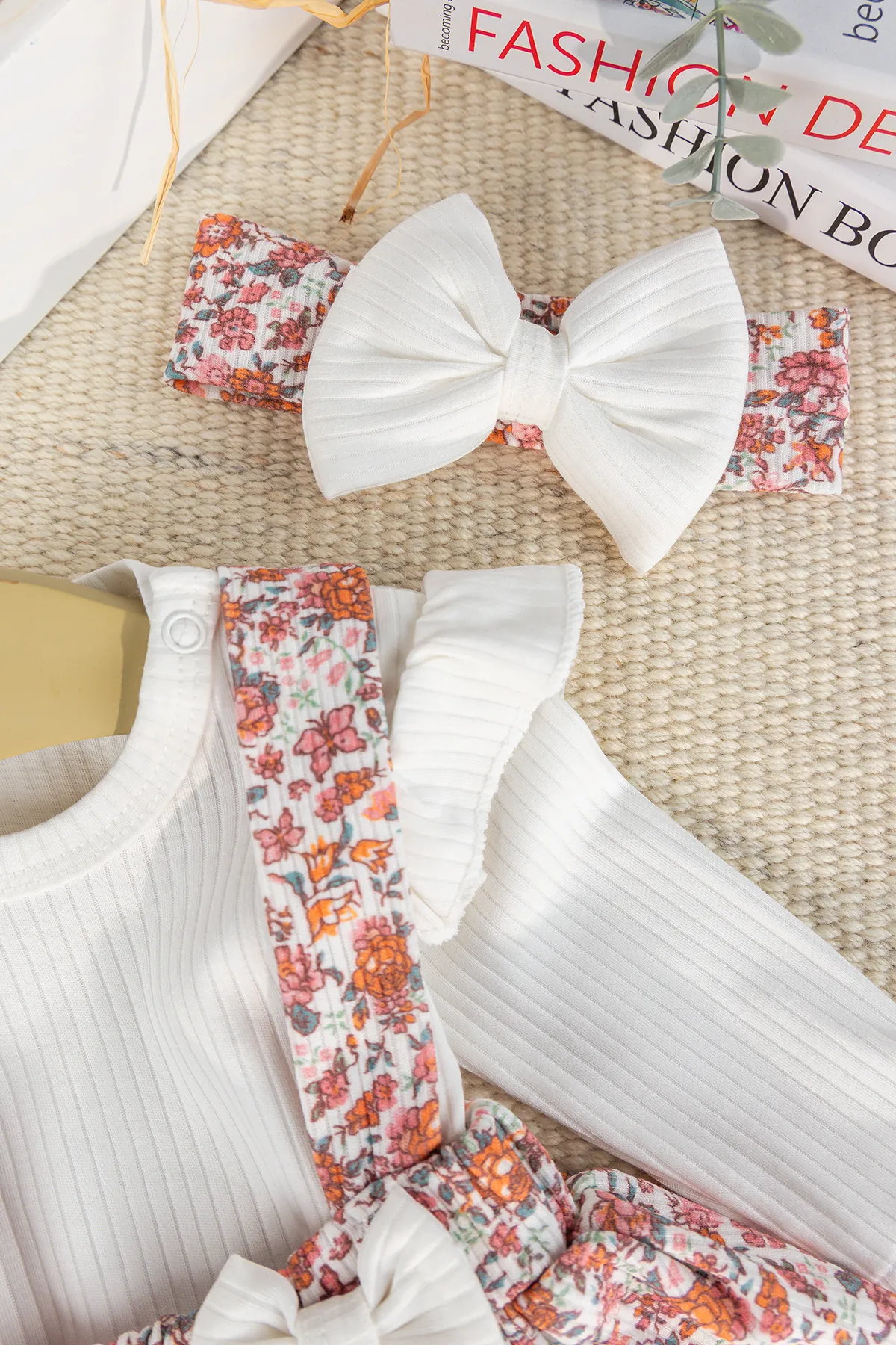 - The shoulders of the baby body are decorated with ruffles.