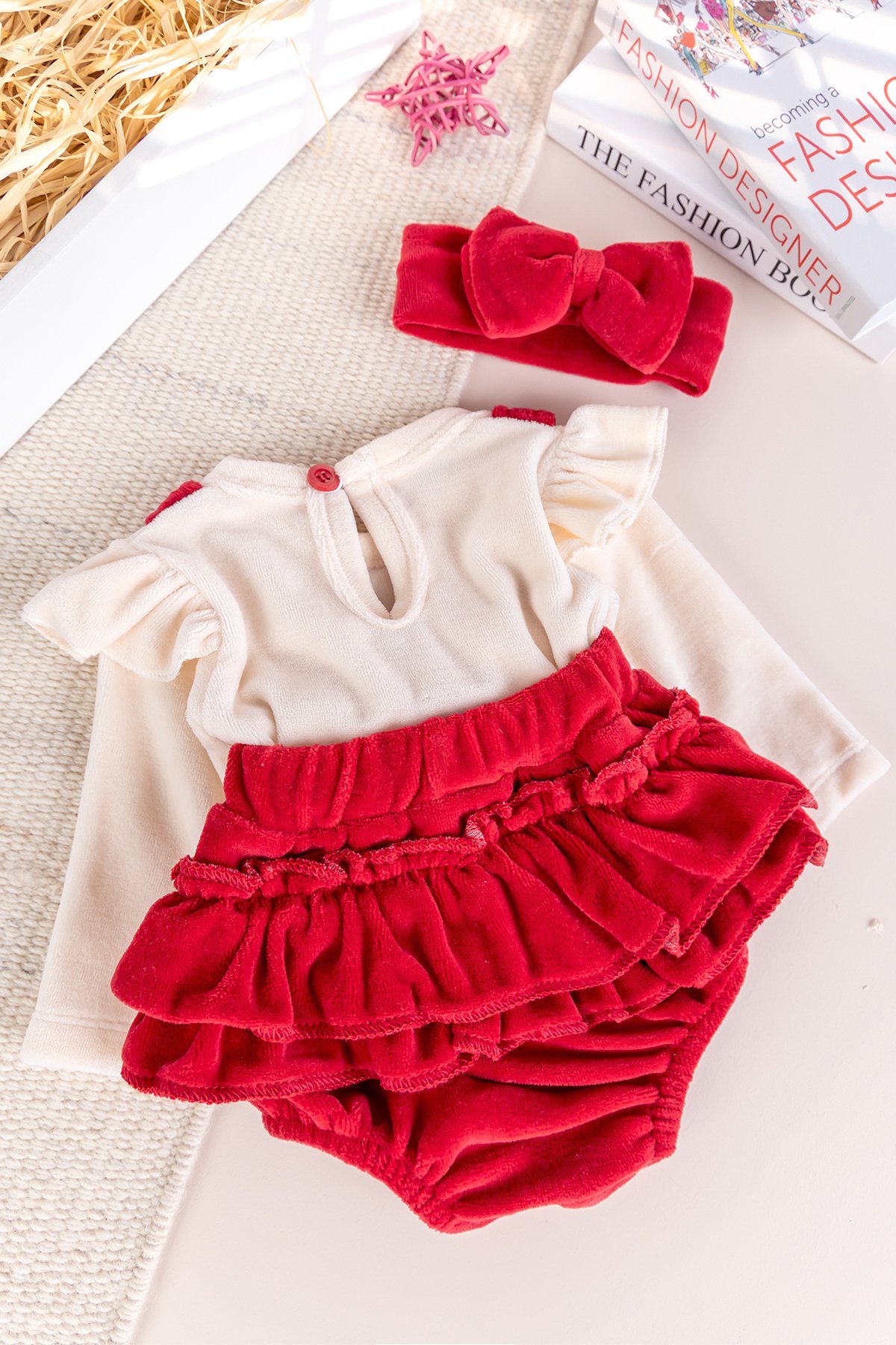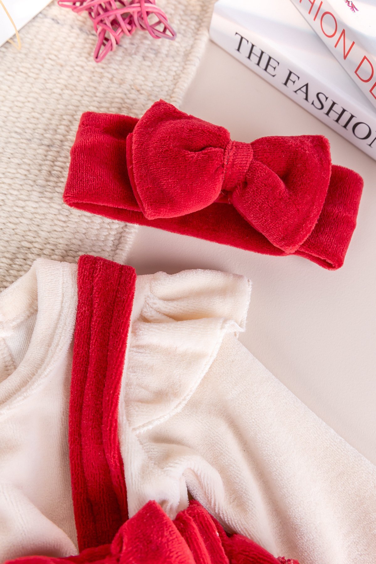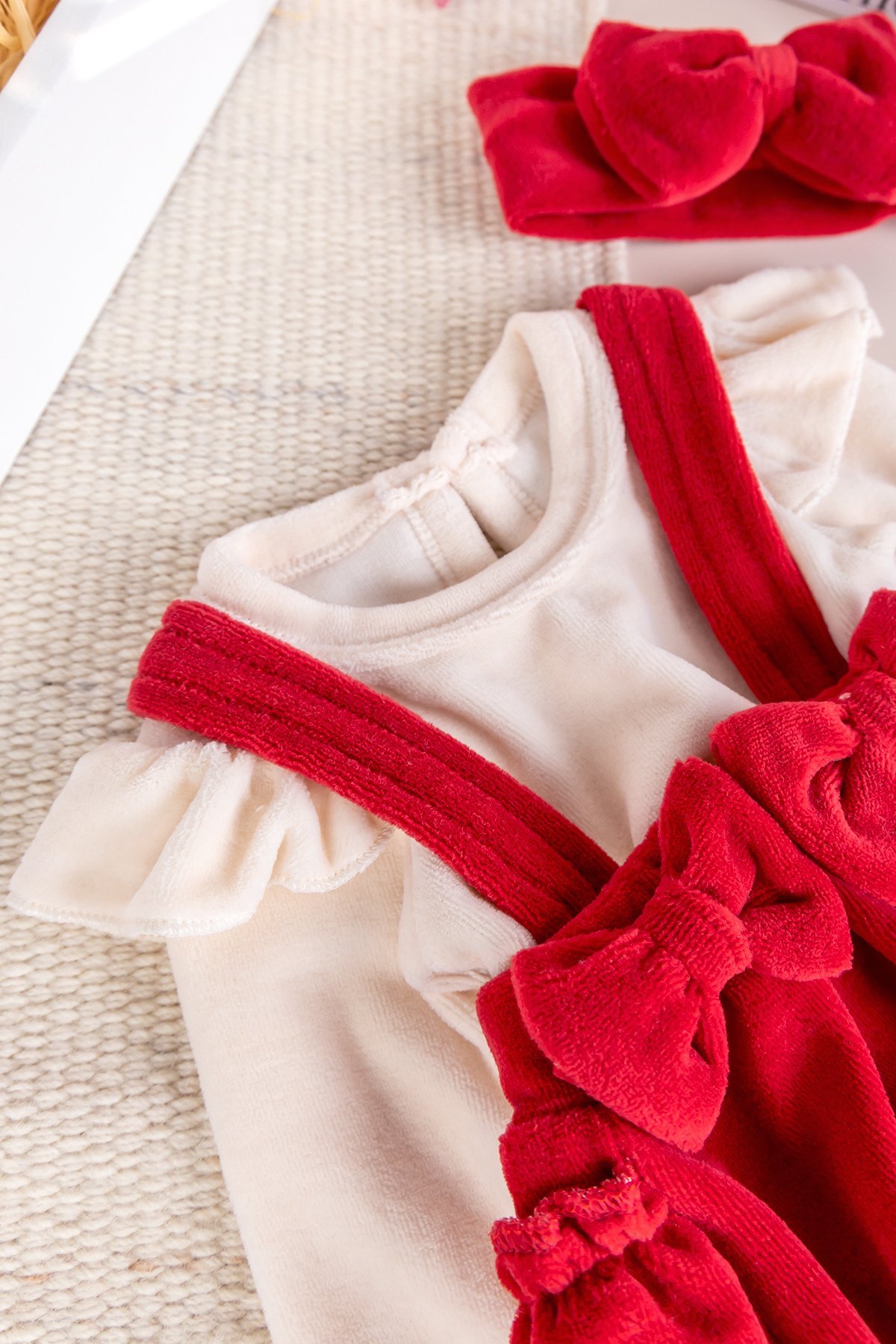 Fiyonklu Bandanalı Kadife Kız Bebek Tulum Salopet Bebek Elbise