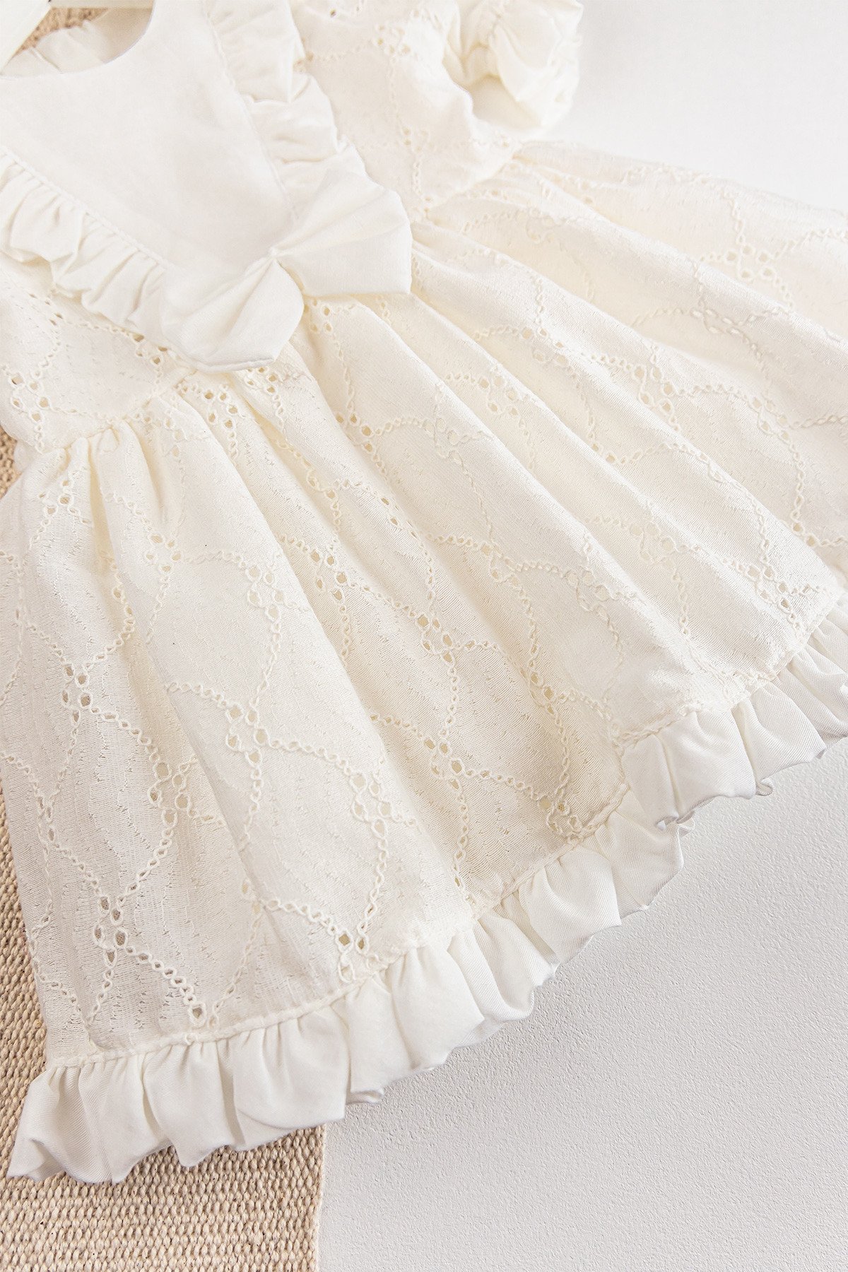 - Bebek elbisenin etek ucu fırfırlı modele sahiptir.