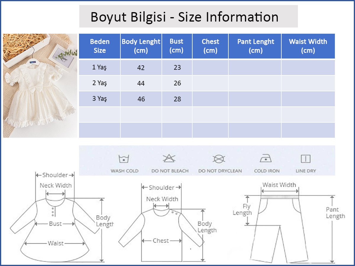 - Bebek elbisenin iç kısmı astarlıdır.