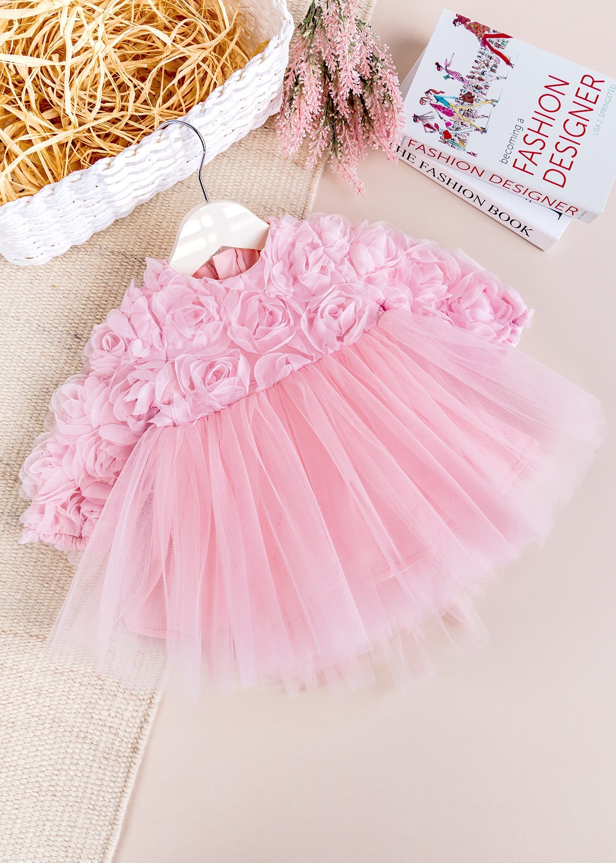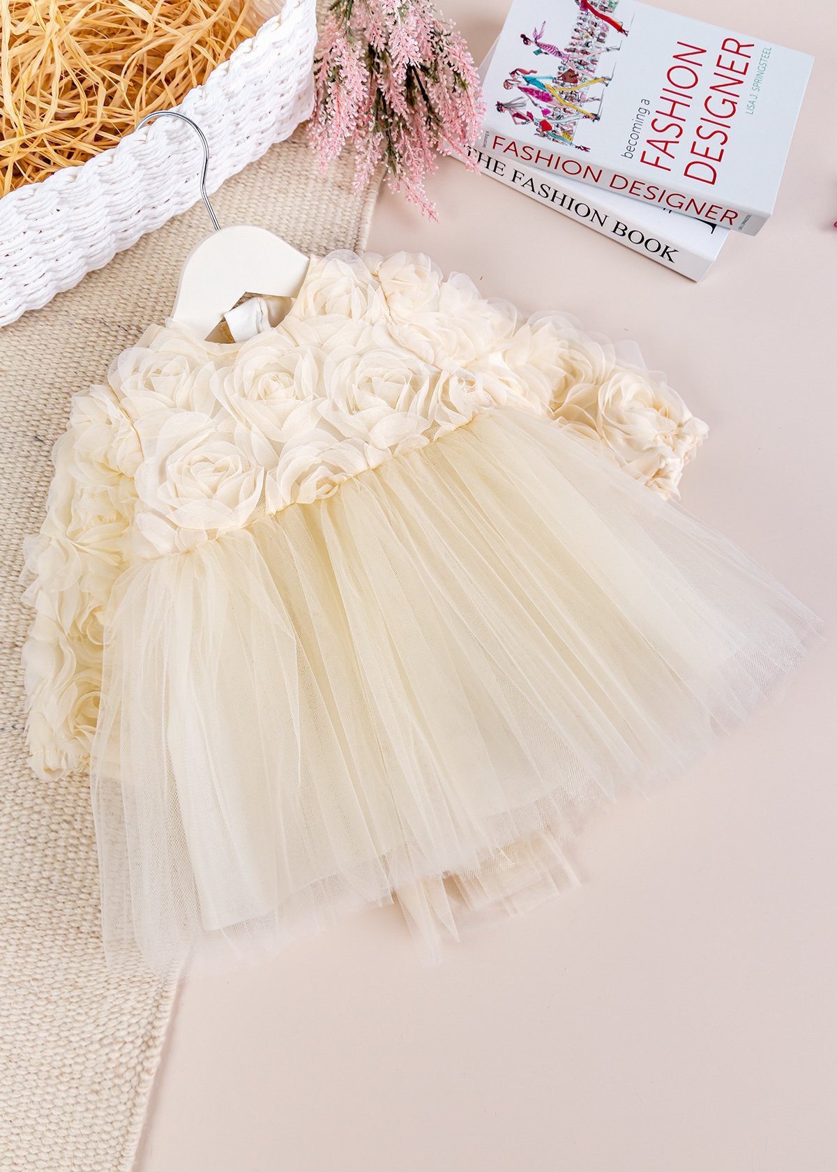- Kız bebek elbisenin üstü tül detaylıdır