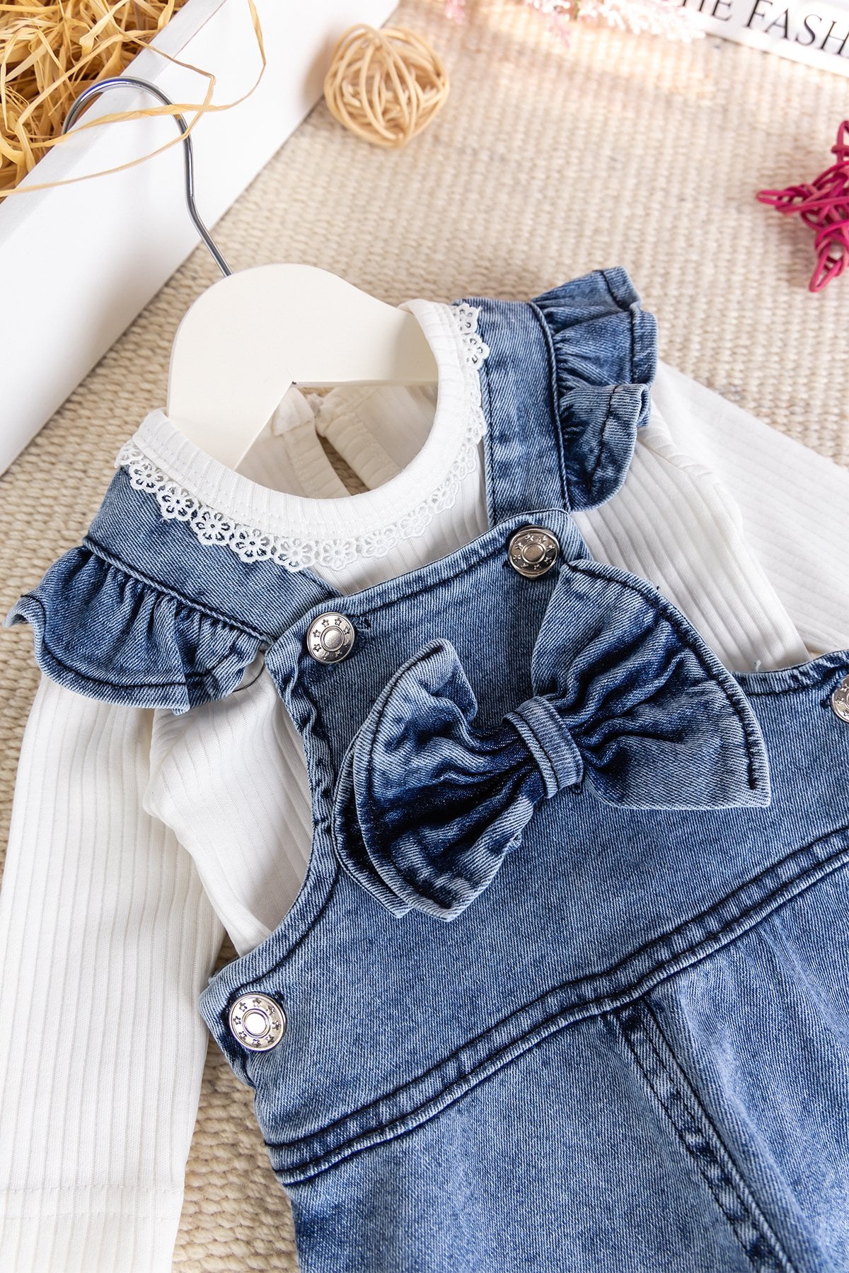 - Bebek salopetin askıları fırfırlıdır