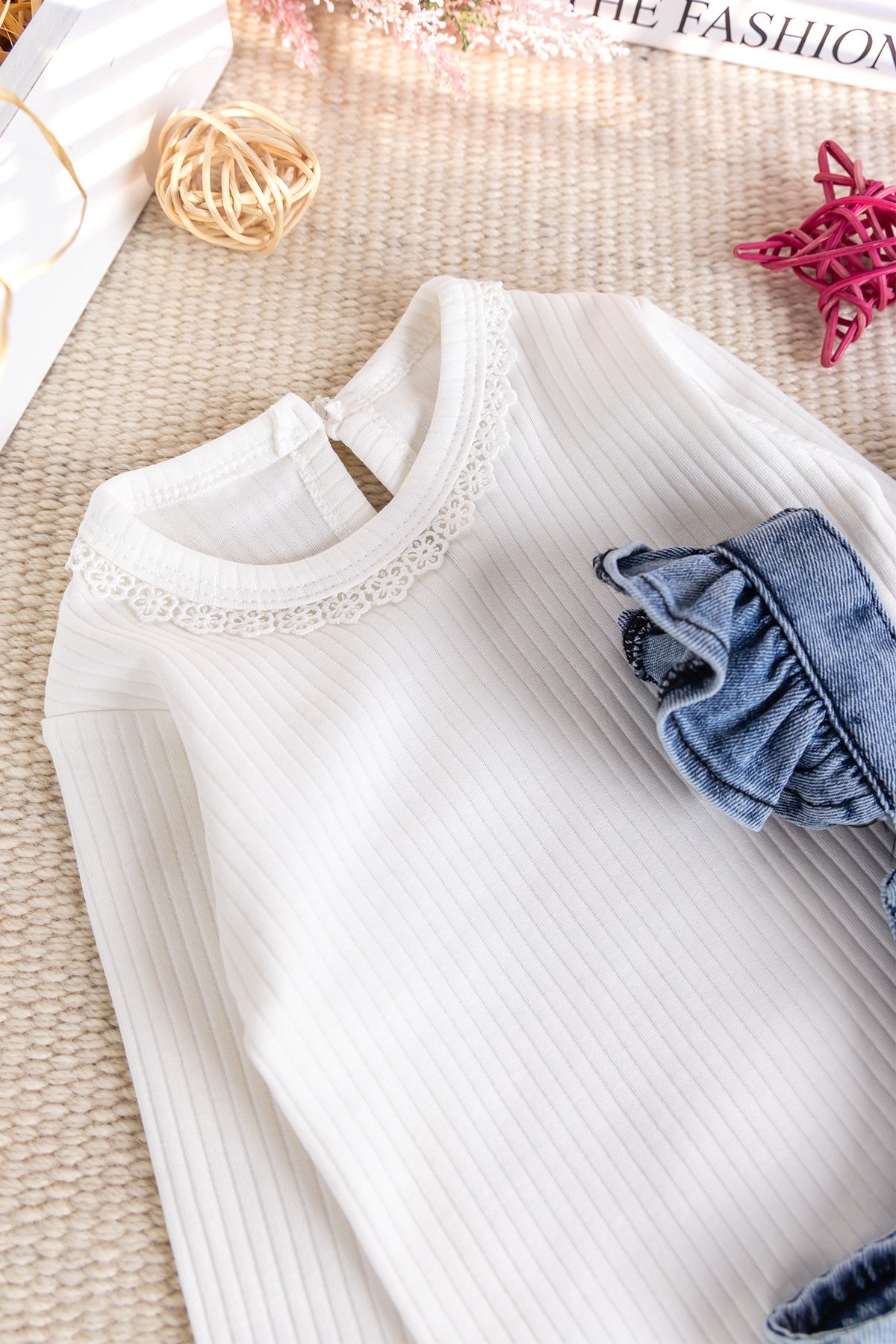 - Bebek bodynin yakası dantel süslemelidir