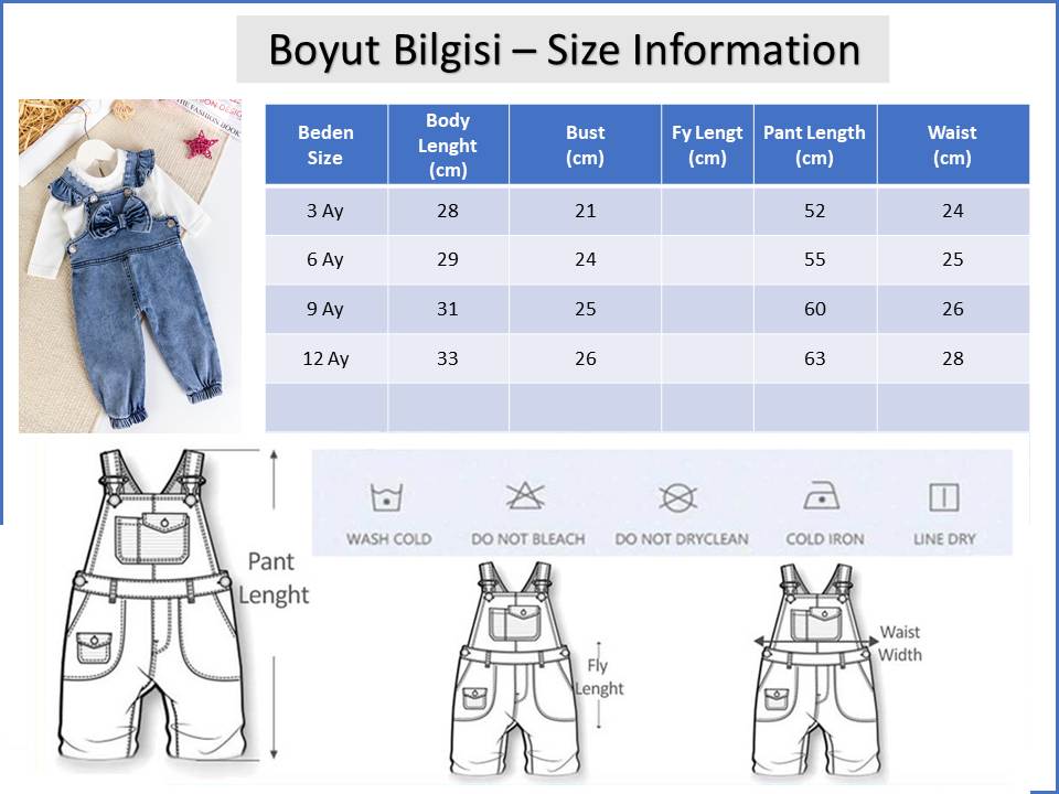 - Bebek salopet yumuşak dokulu kot kumaştan üretilmiştir