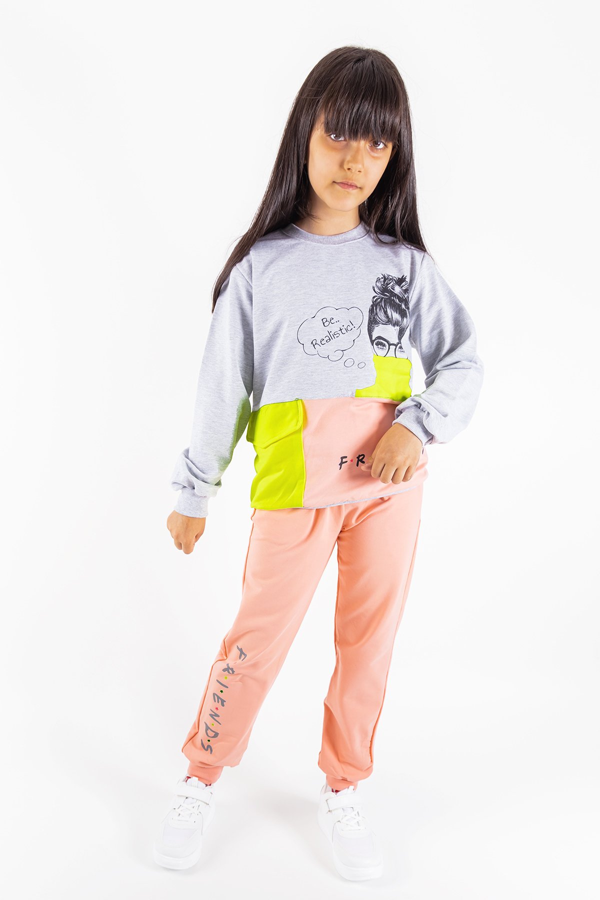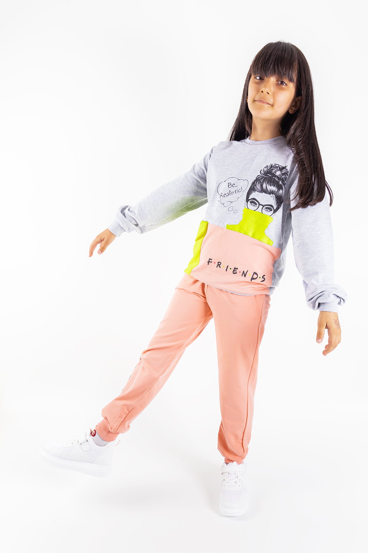 Friend Baskılı Neon Detaylı Kız Çocuk Eşofman Takımı