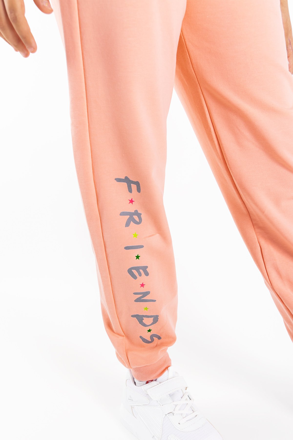 - Eşofmanın tek tarafında friends baskısı vardır.