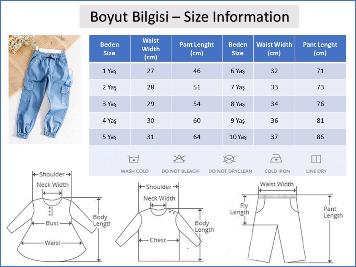 - Pantolon beli lastiklidir ve bağcık büzgülüdür.