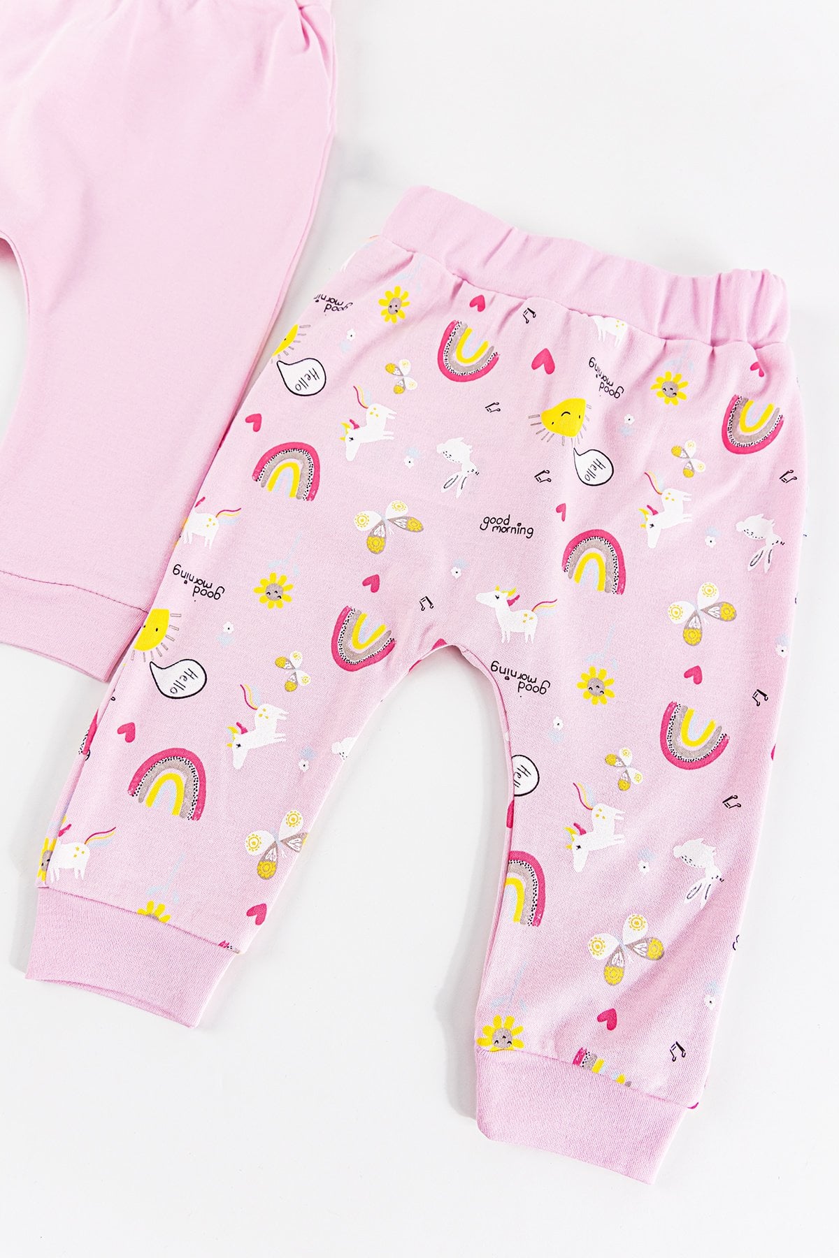 Gökkuşağı Desenli 2'li Kız Bebek Tek Alt Pantolon Takım