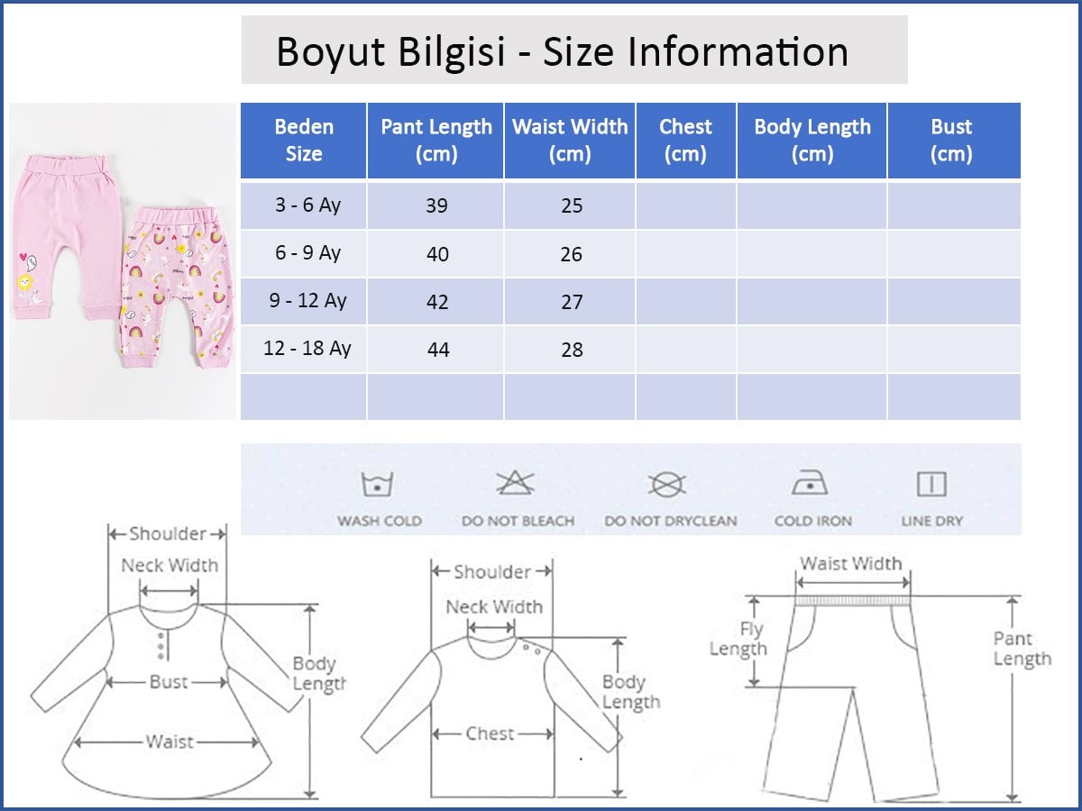 - Bebek tek alt pantolon soft dokulu pamuklu penye kumaş ile üretilmiştir.