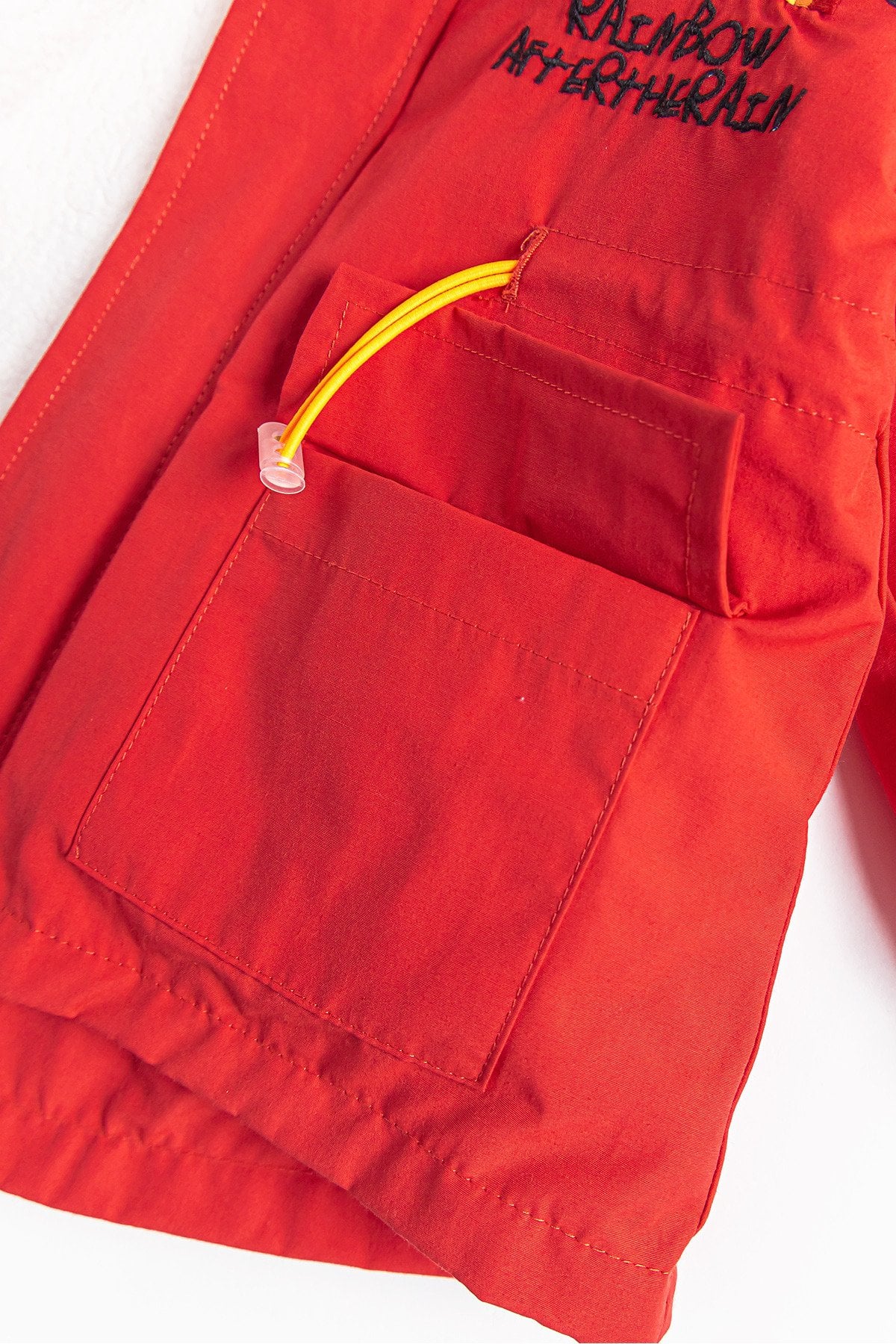 - Çocuk mont arkası uzun asimetrik kesimlidir.