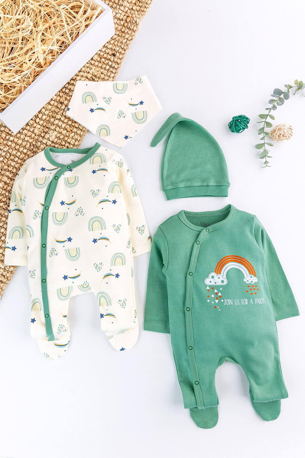 Gökkuşağı Temalı 2'li Uzun Kollu Kız/Erkek Bebek Tulum Takım