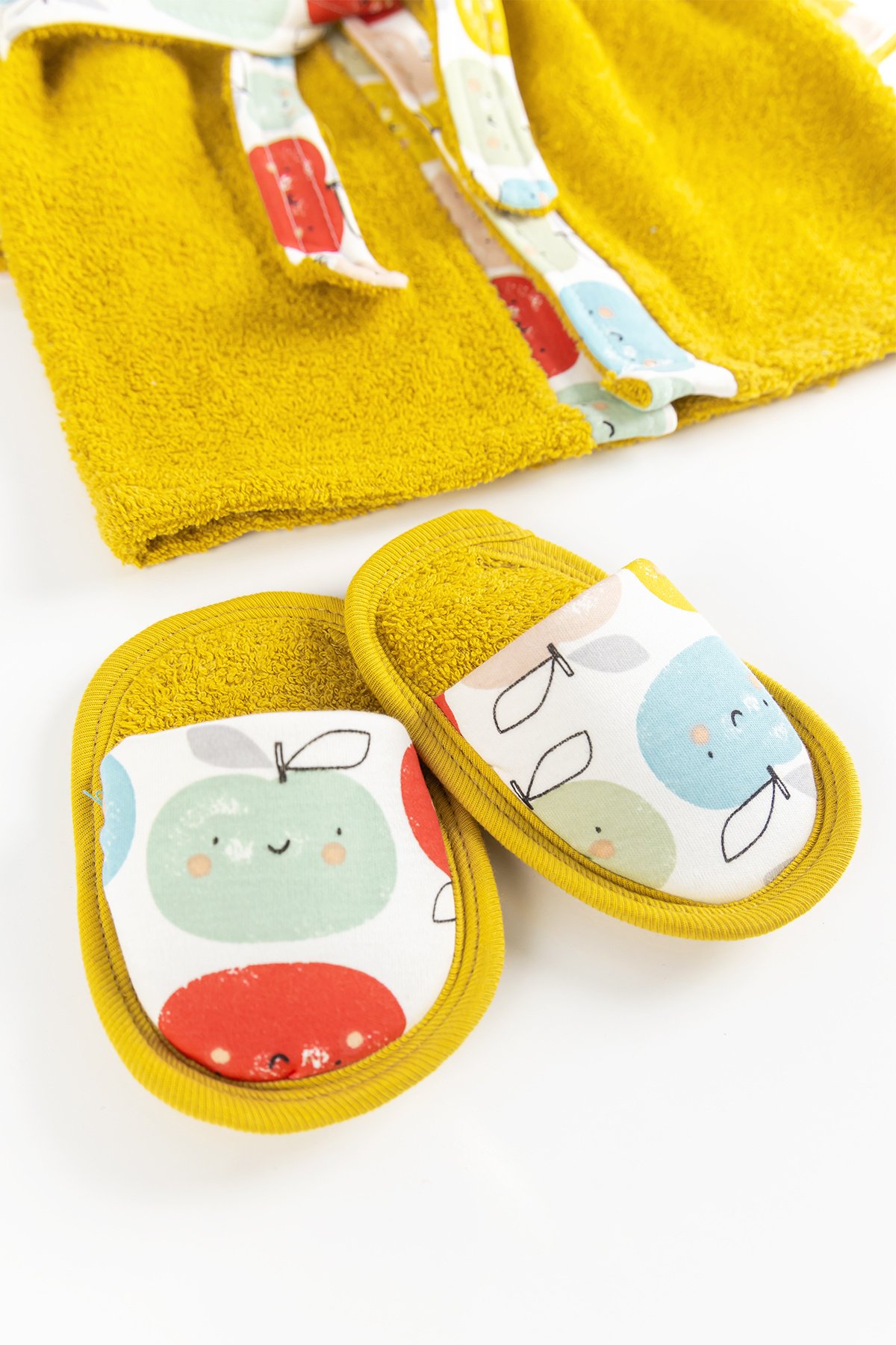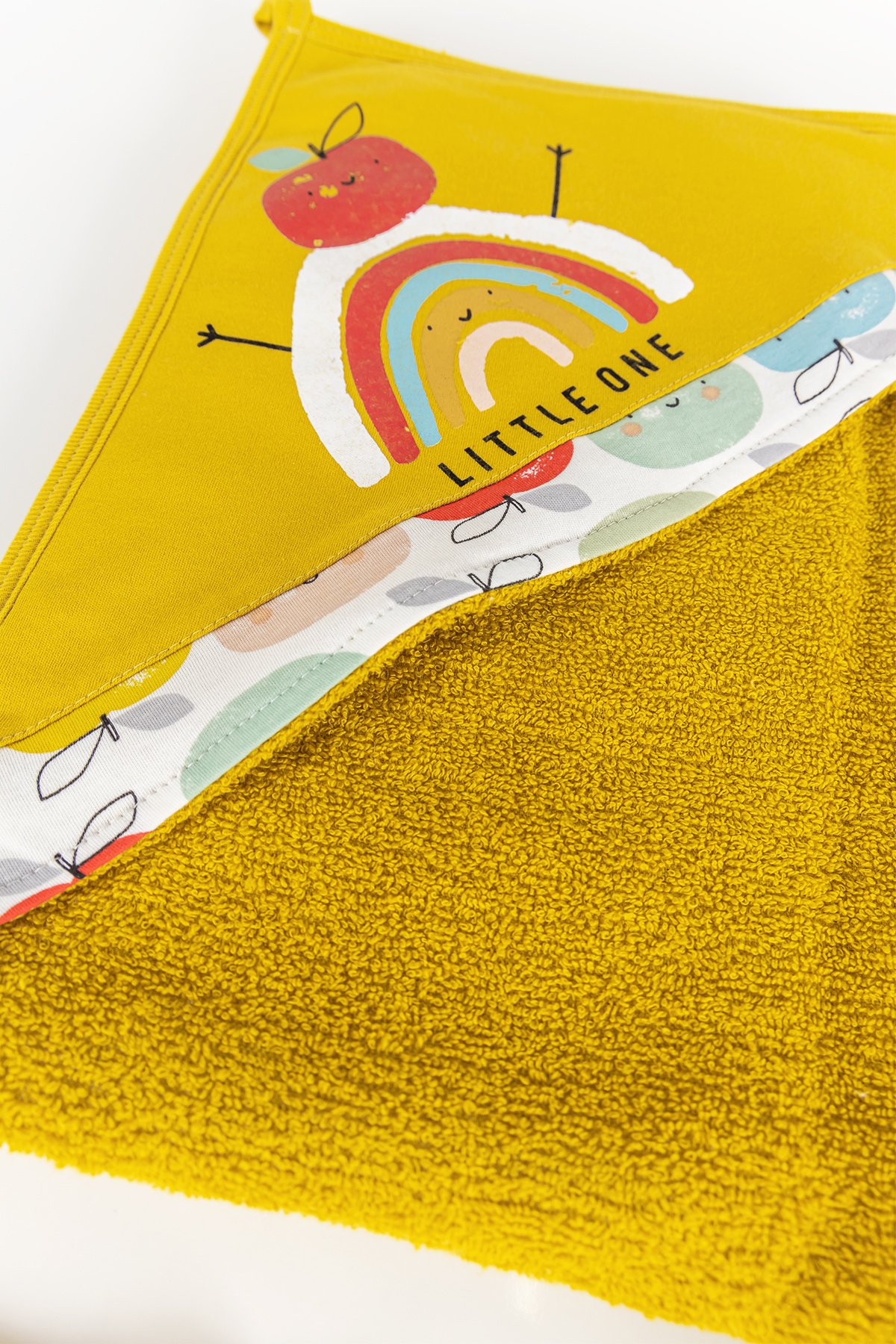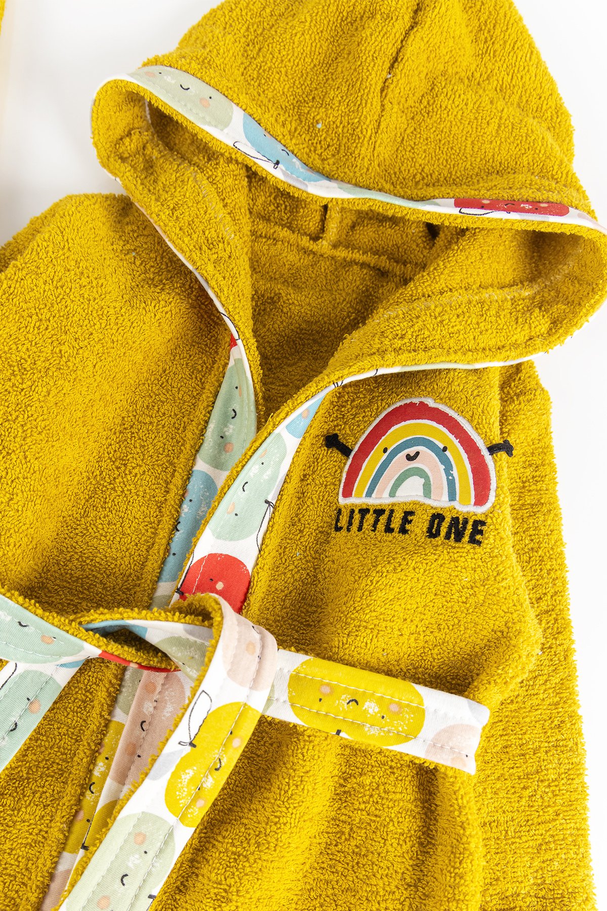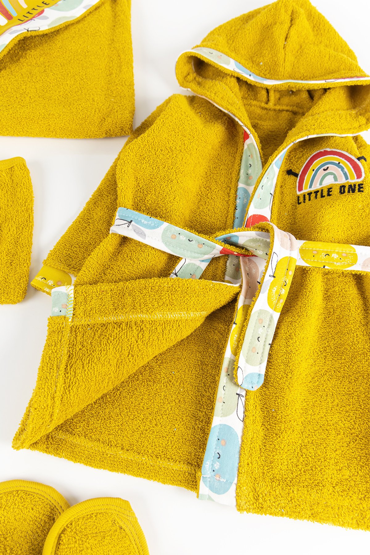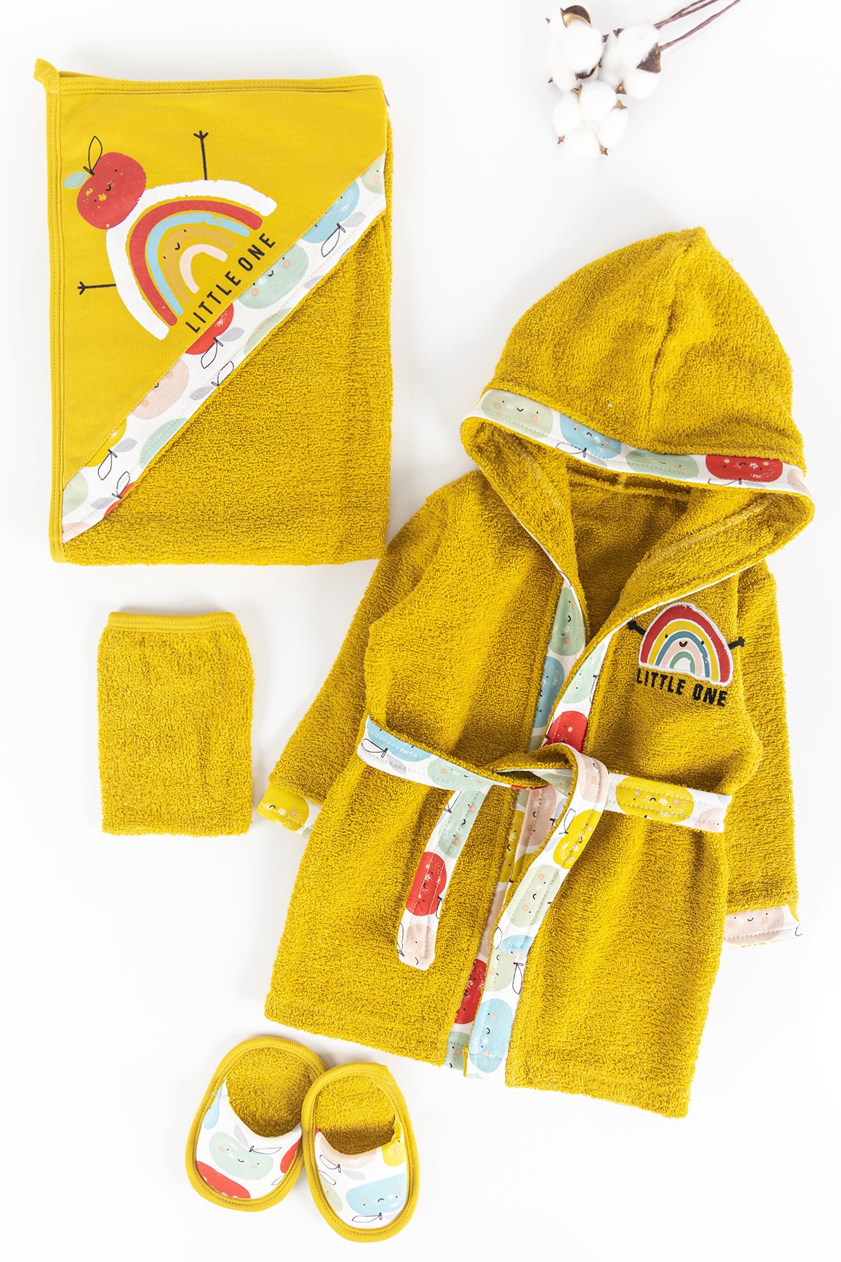 Gökkuşağı Temalı 4 Parça Bebek Havlu Bornoz Seti Hardal Sarısı - 0-18 Ay