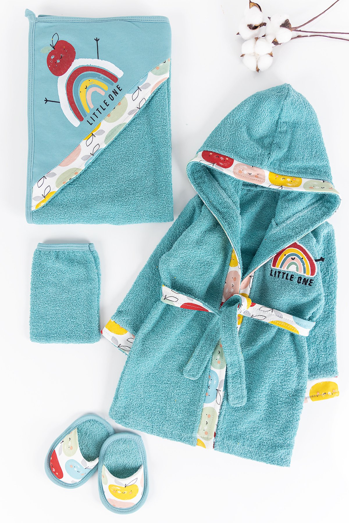 Gökkuşağı Temalı 4 Parça Bebek Havlu Bornoz Seti
