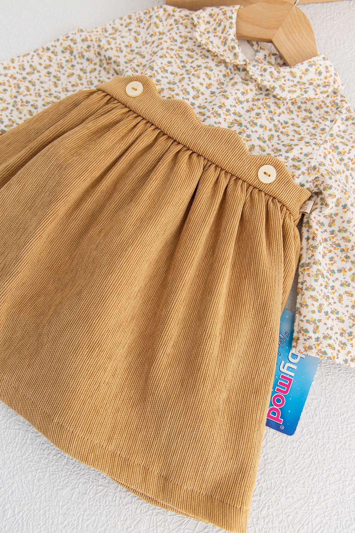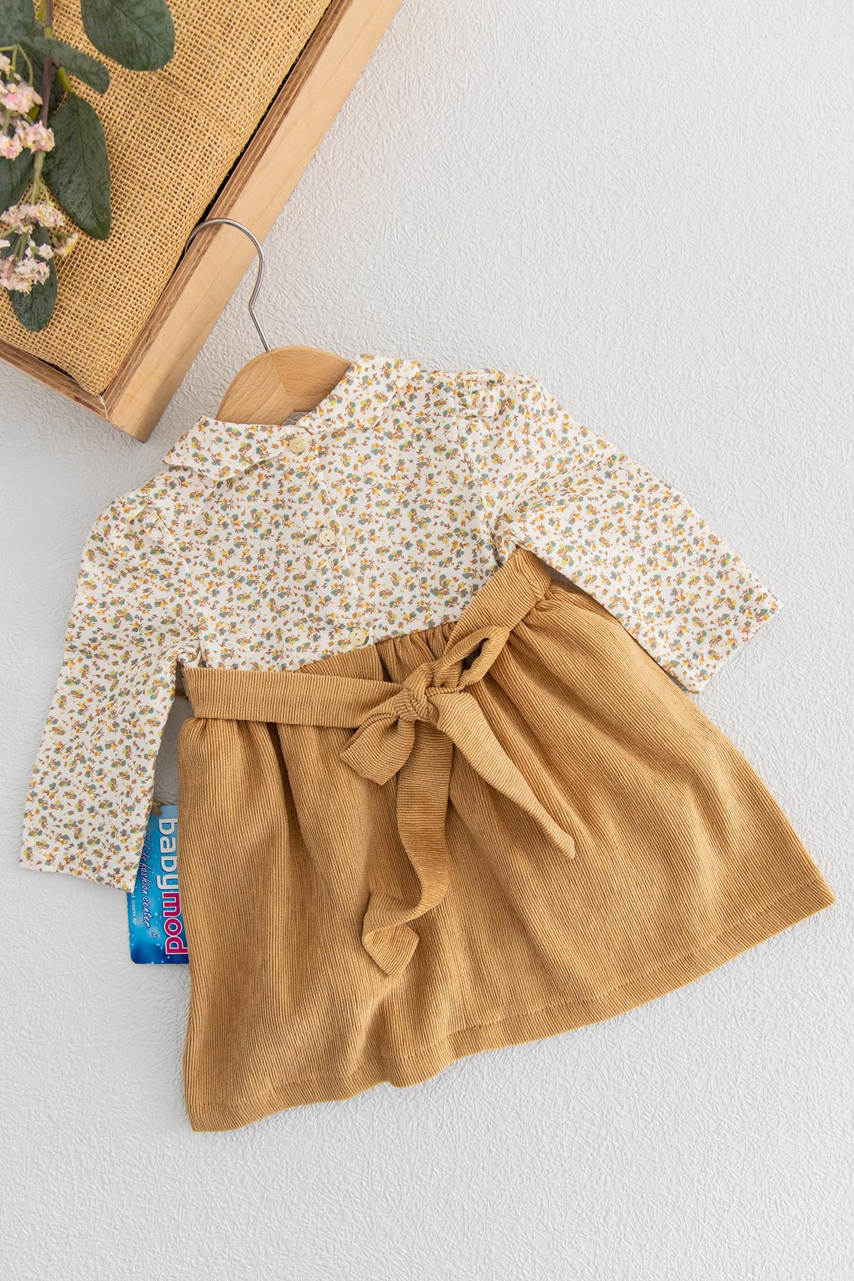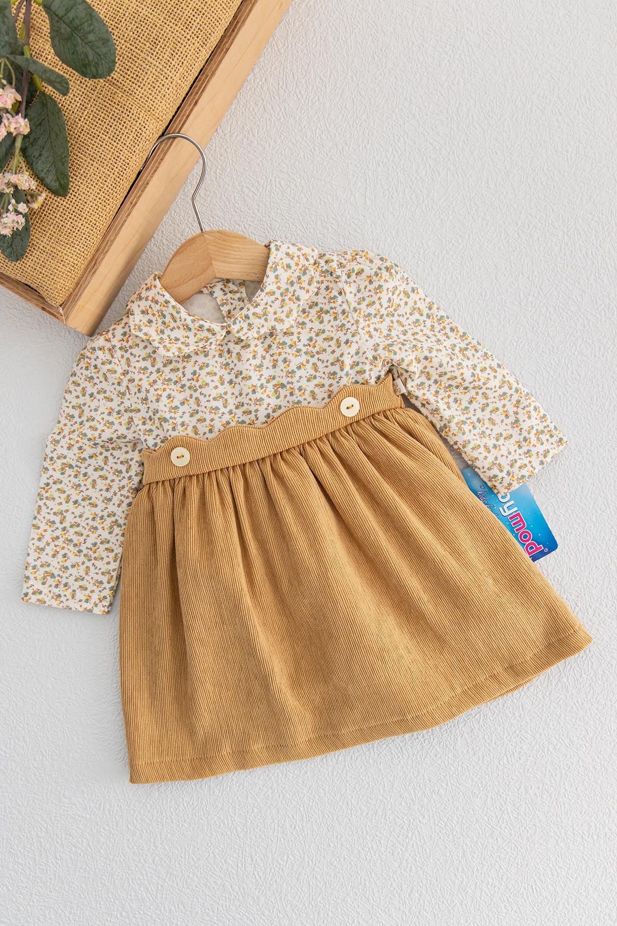 Gömlek Detaylı Kadife Etekli Kız Bebek Elbise