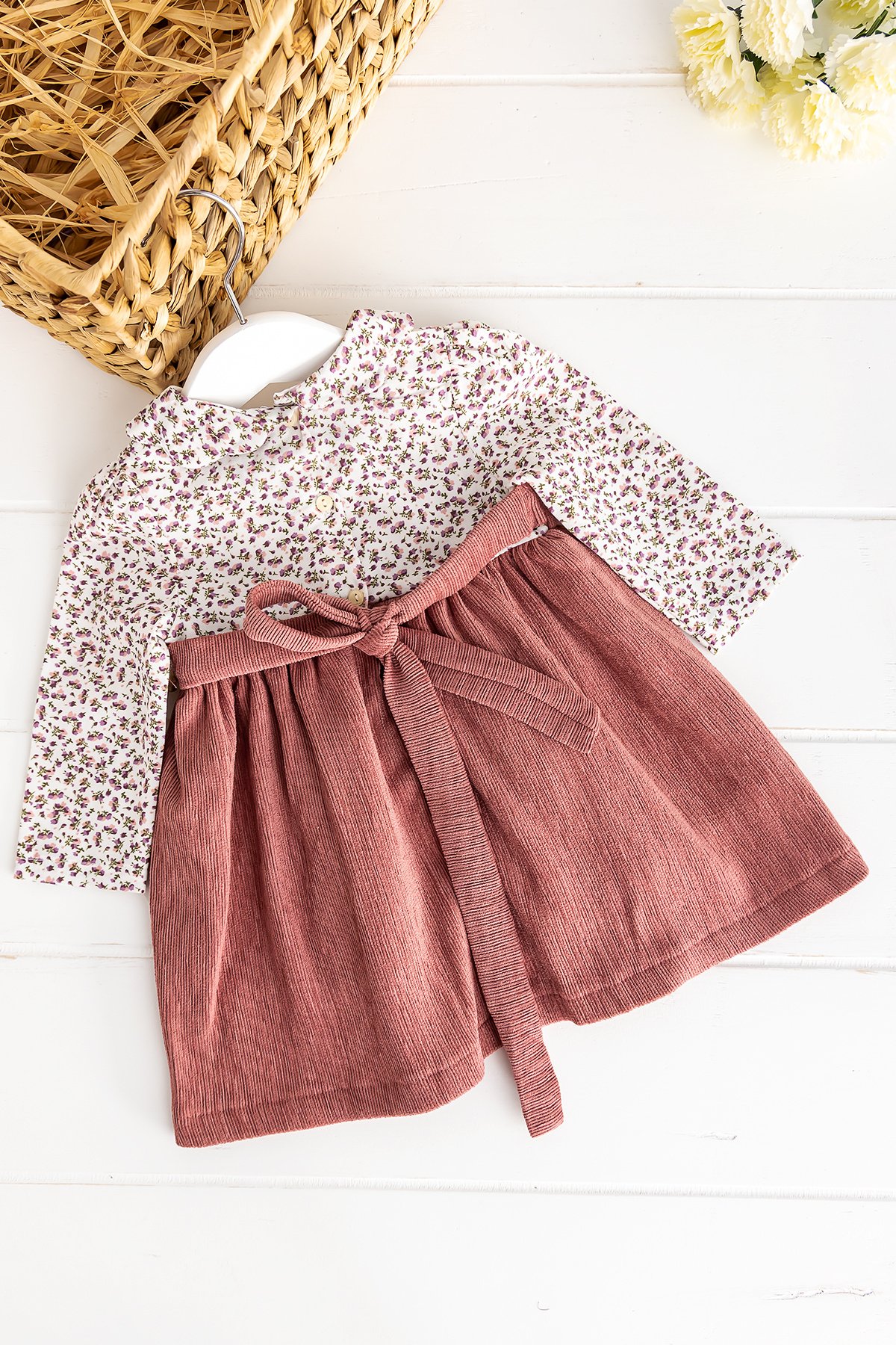 - Elbisenin eteği kadife ince fitilli kadife kumaşlıdır.