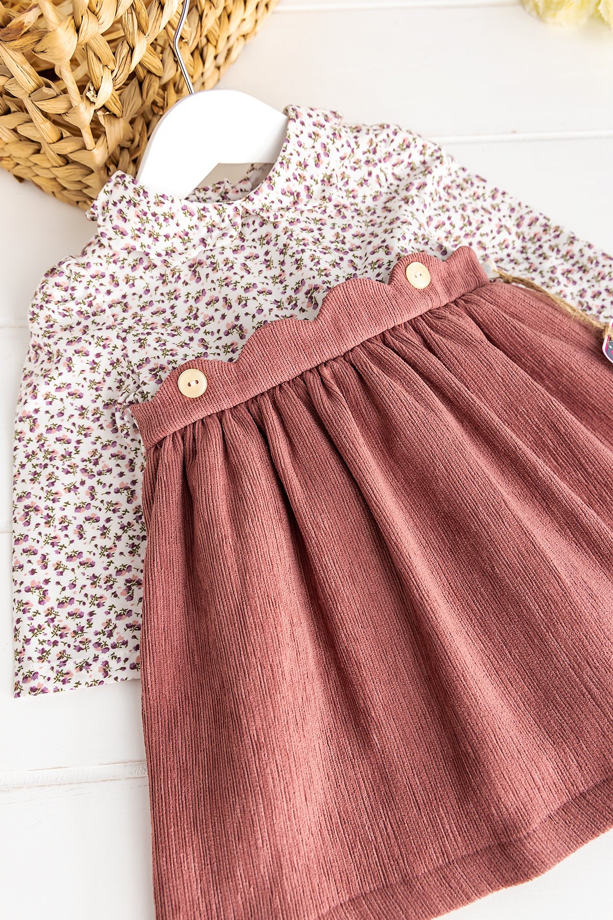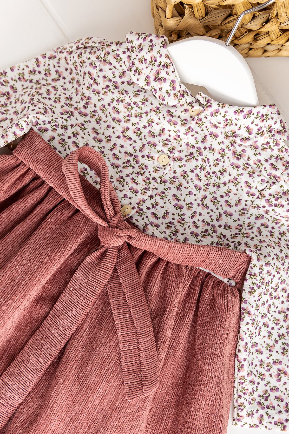 Gömlek Yakalı Kadife Bebek Elbise