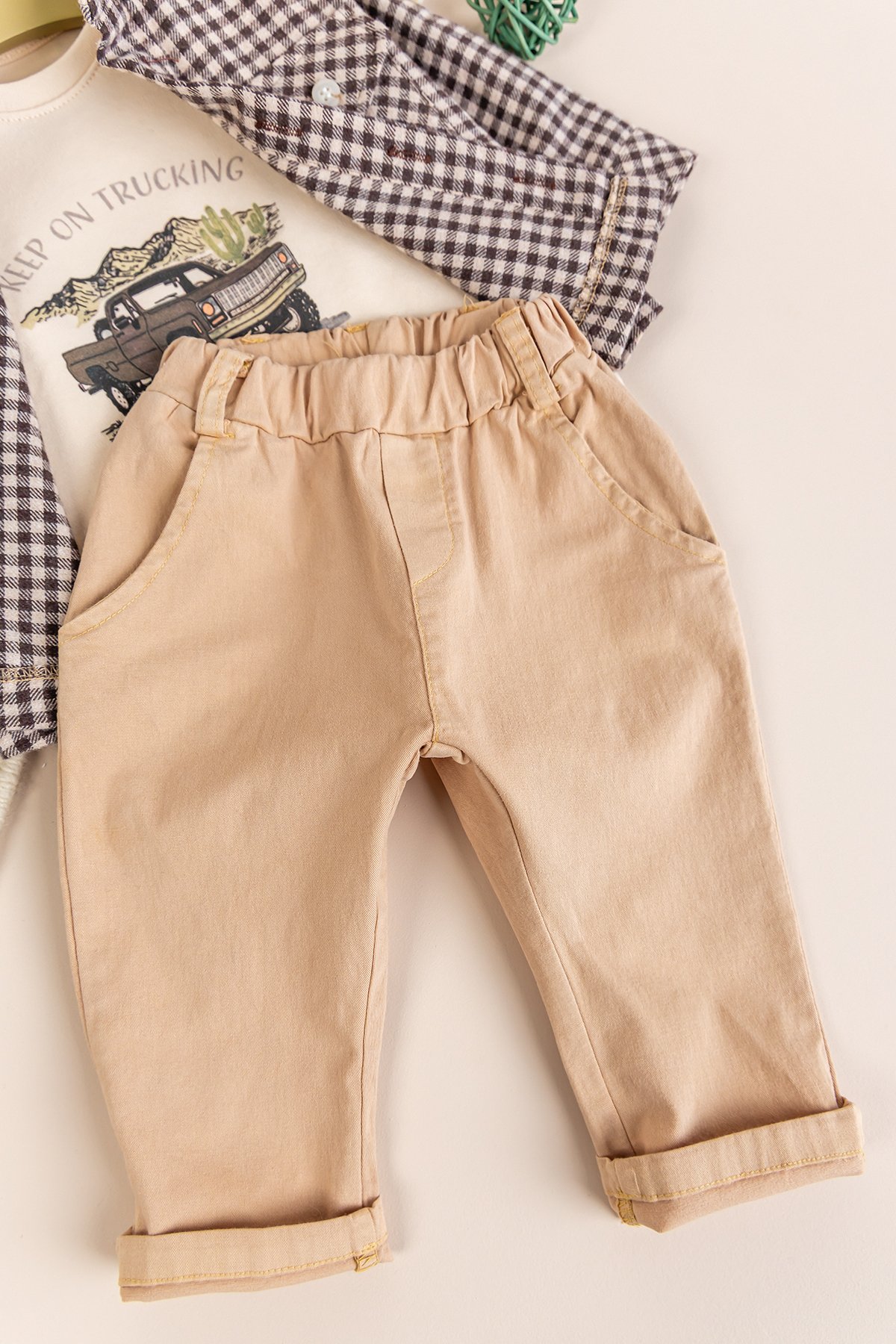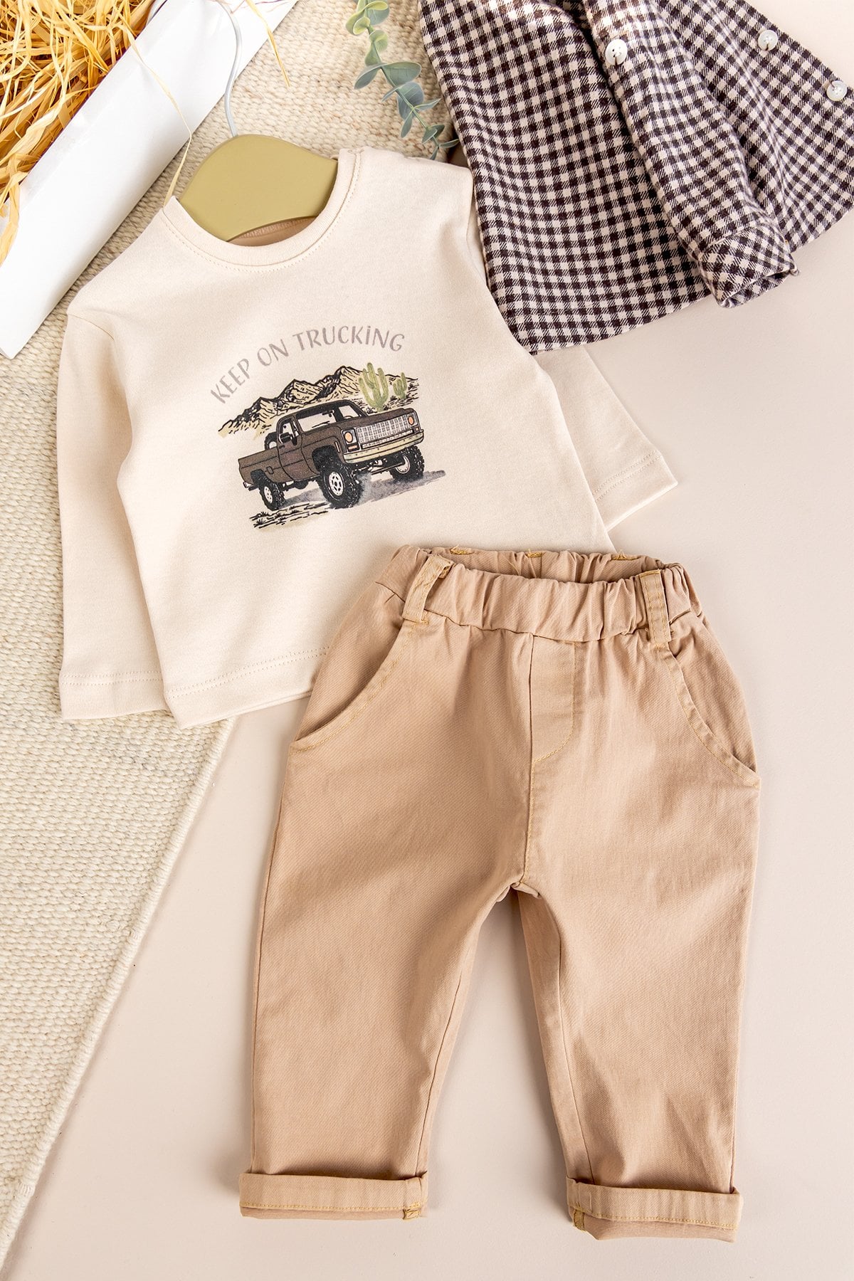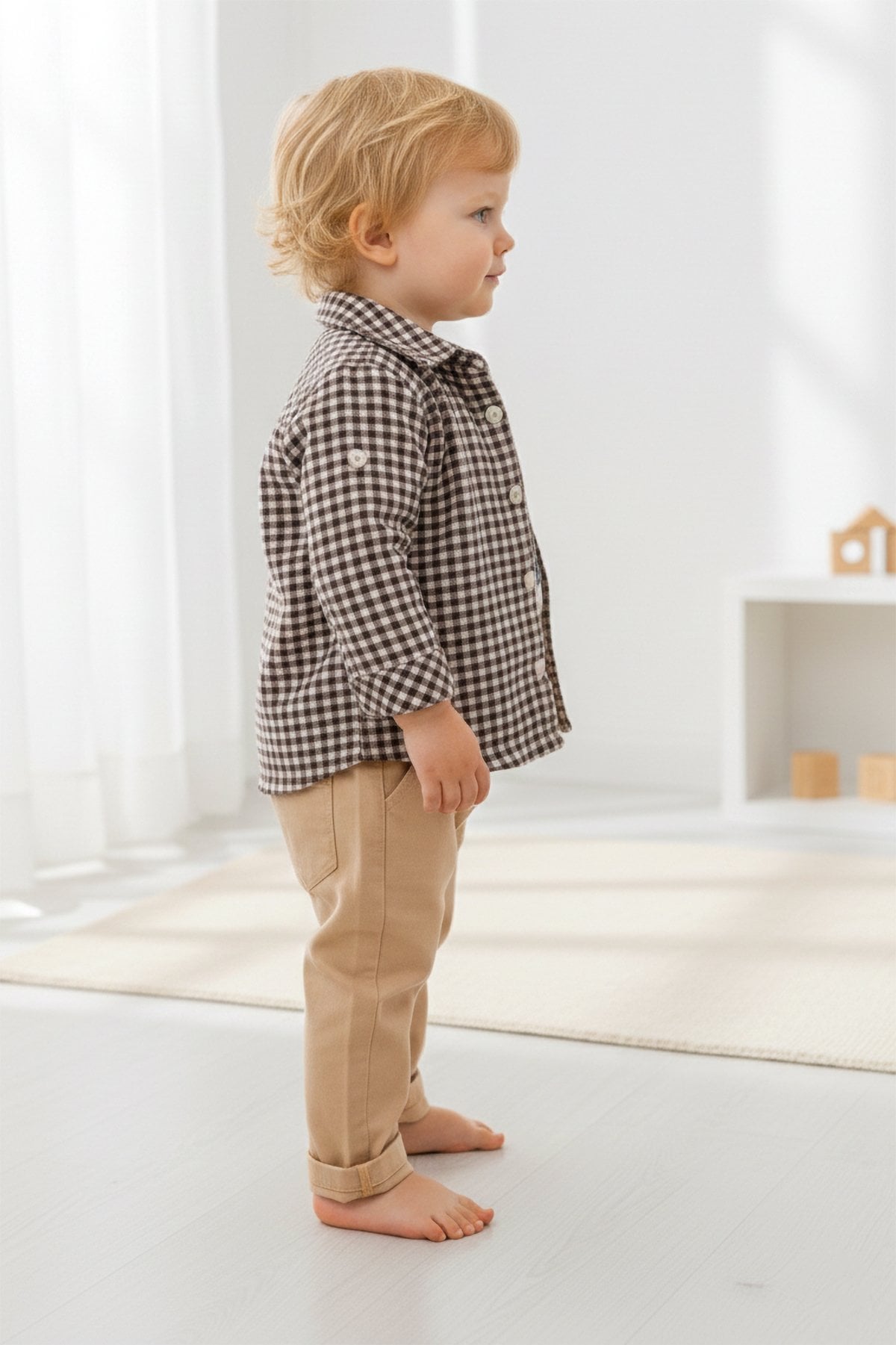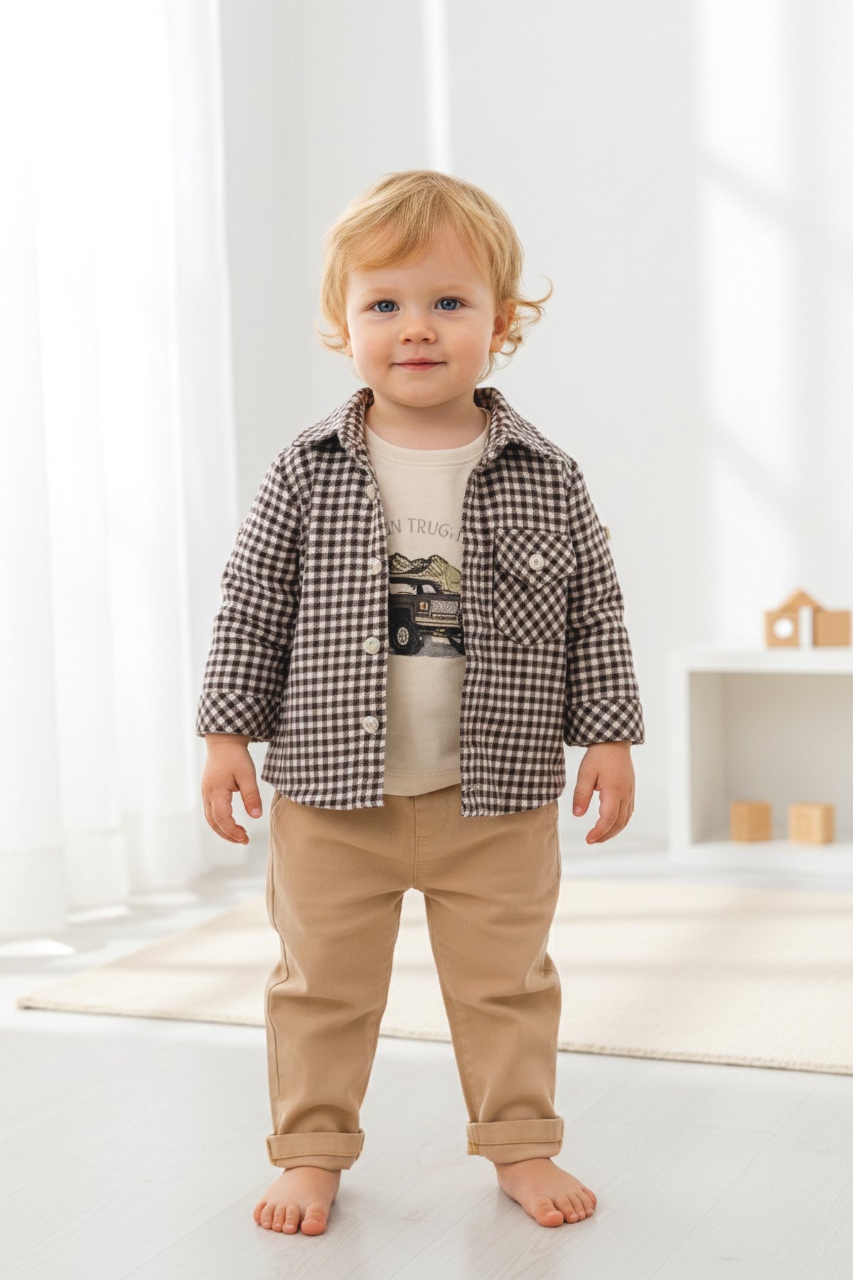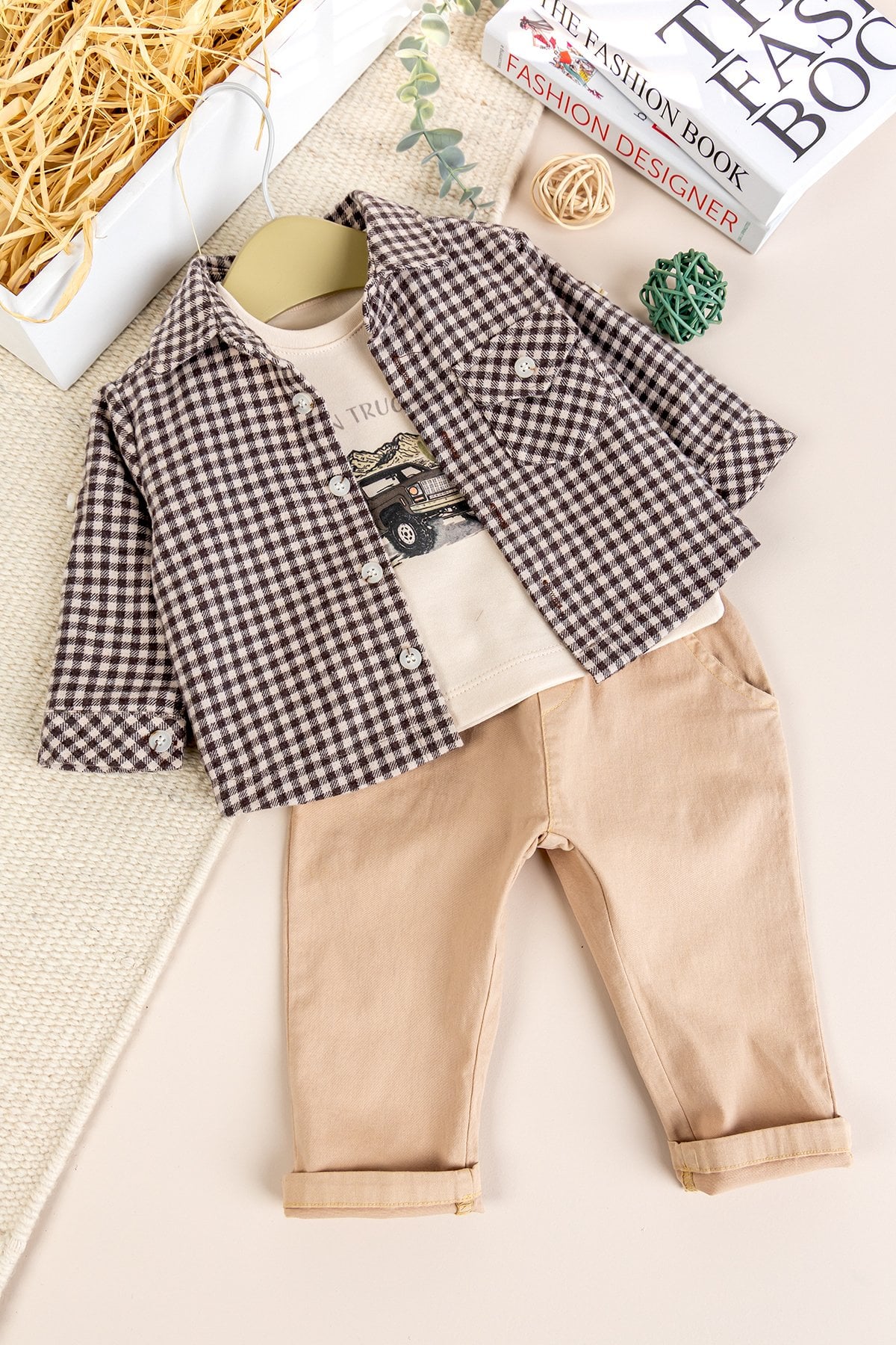 Gömlekli 3'lü 100% Pamuk Şık Erkek Bebek Takım Set