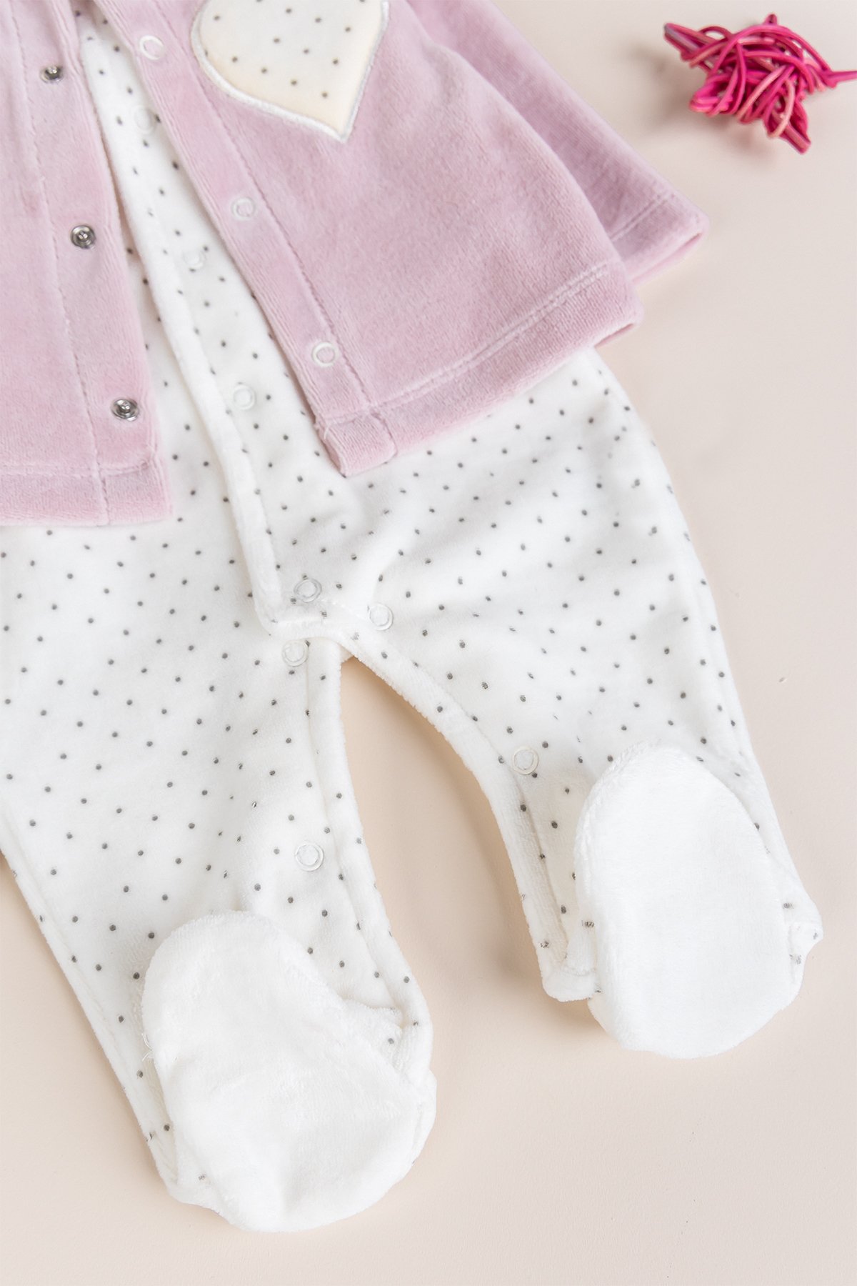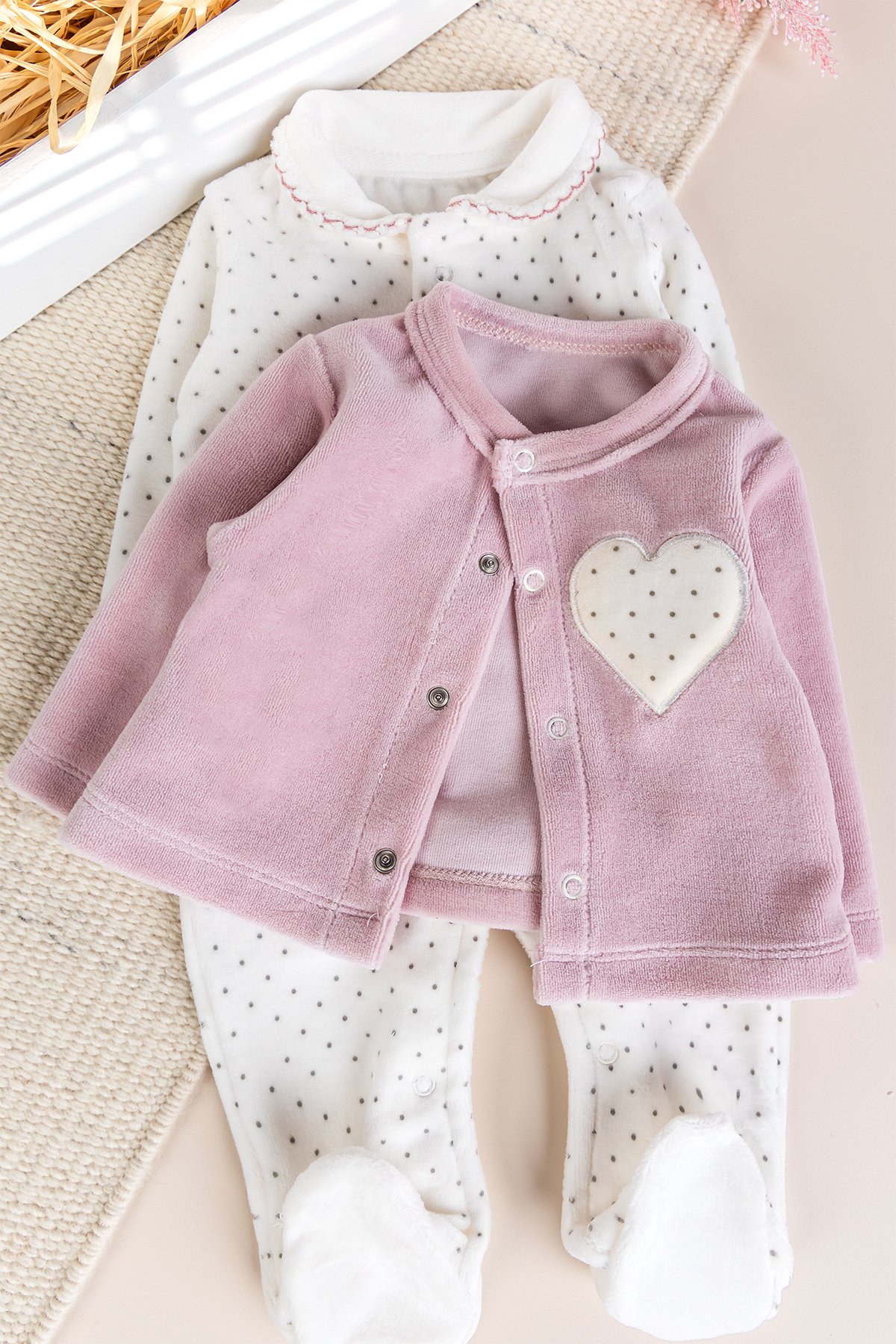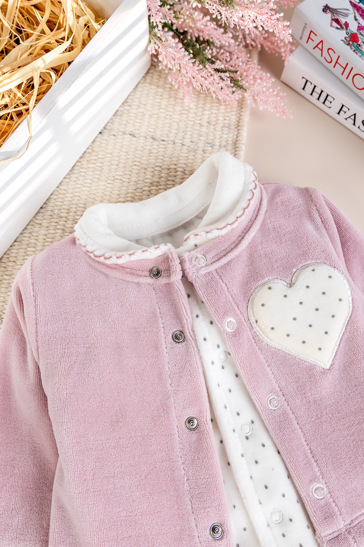 Hırkalı Bebe Yaka 2'li Kadife Kışlık Kız Bebek Tulum Set