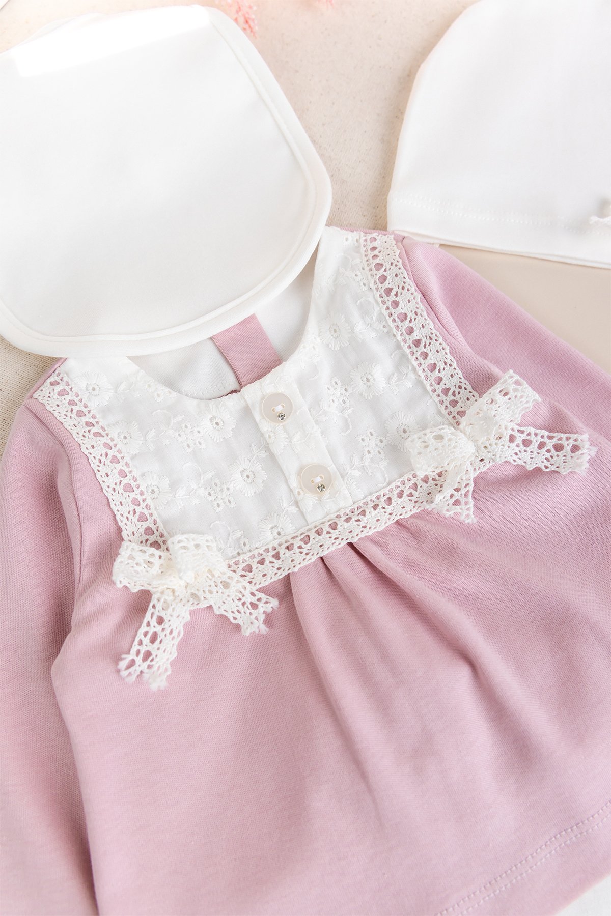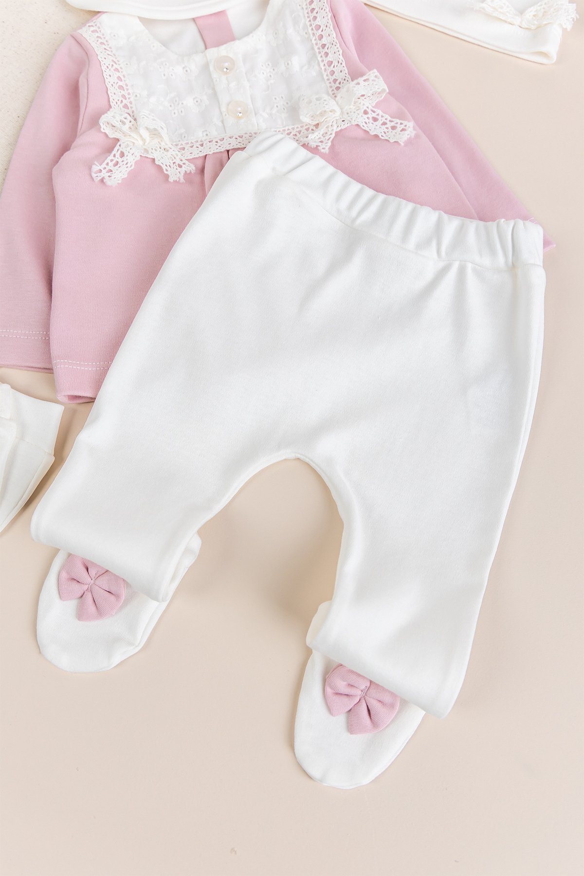 Fistolu 100% Pamuk Kız Bebek Takım 5'li Set Gül kurusu - 3-6 AY