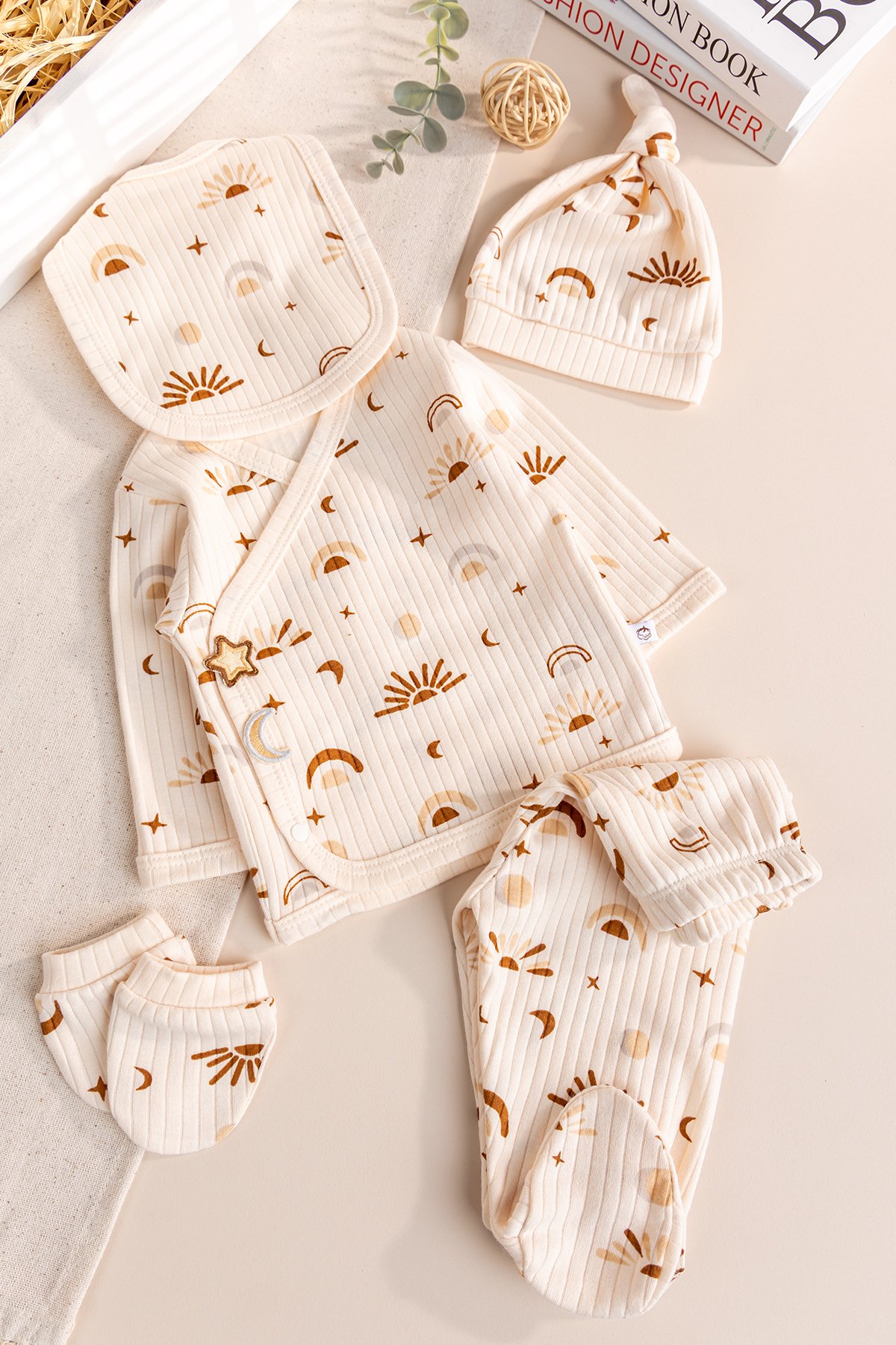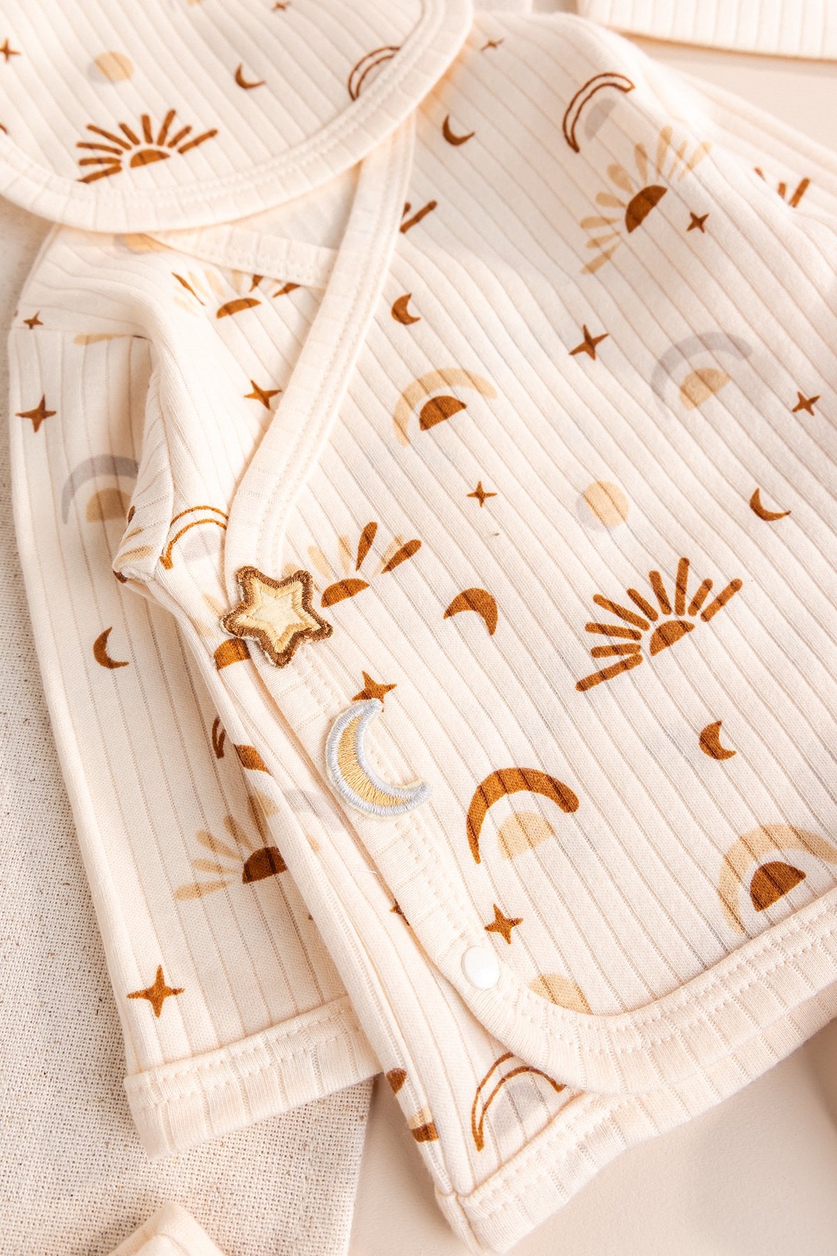 Bebeğinizin dünyaya gözlerini açtığı o ilk anlarda, ona bir güneş gibi parlayan yumuşaklığı hediye edin! Güneş desenli yeni doğan setimiz, hem kız hem de erkek bebekler için uygun (unisex) tasarımı ve %100 pamuklu dokusuyla en tatlı ilk anılarınızın bir parçası olacak.