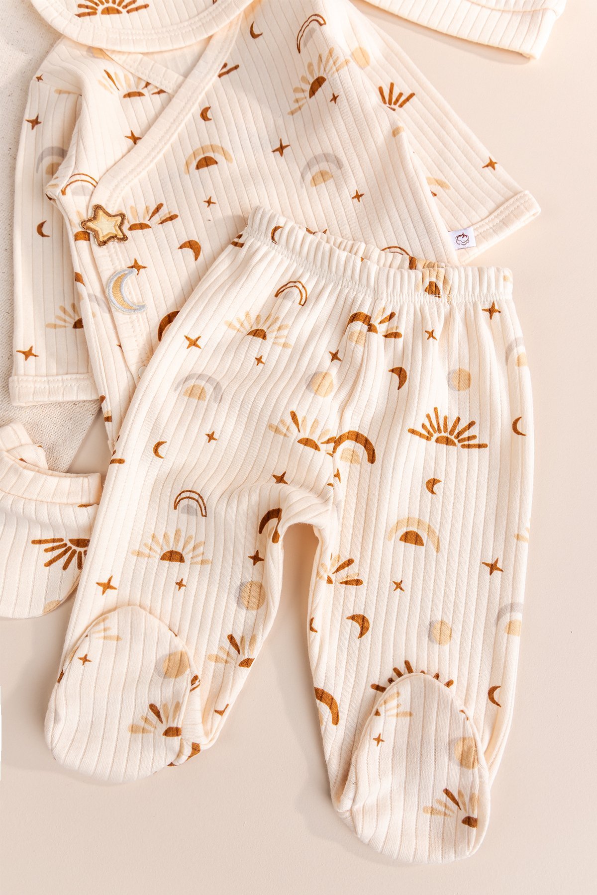 Güneş Desenli 100% Pamuk 5'li Kız Erkek Bebek Hastane Çıkışı Yeni Doğan Set
