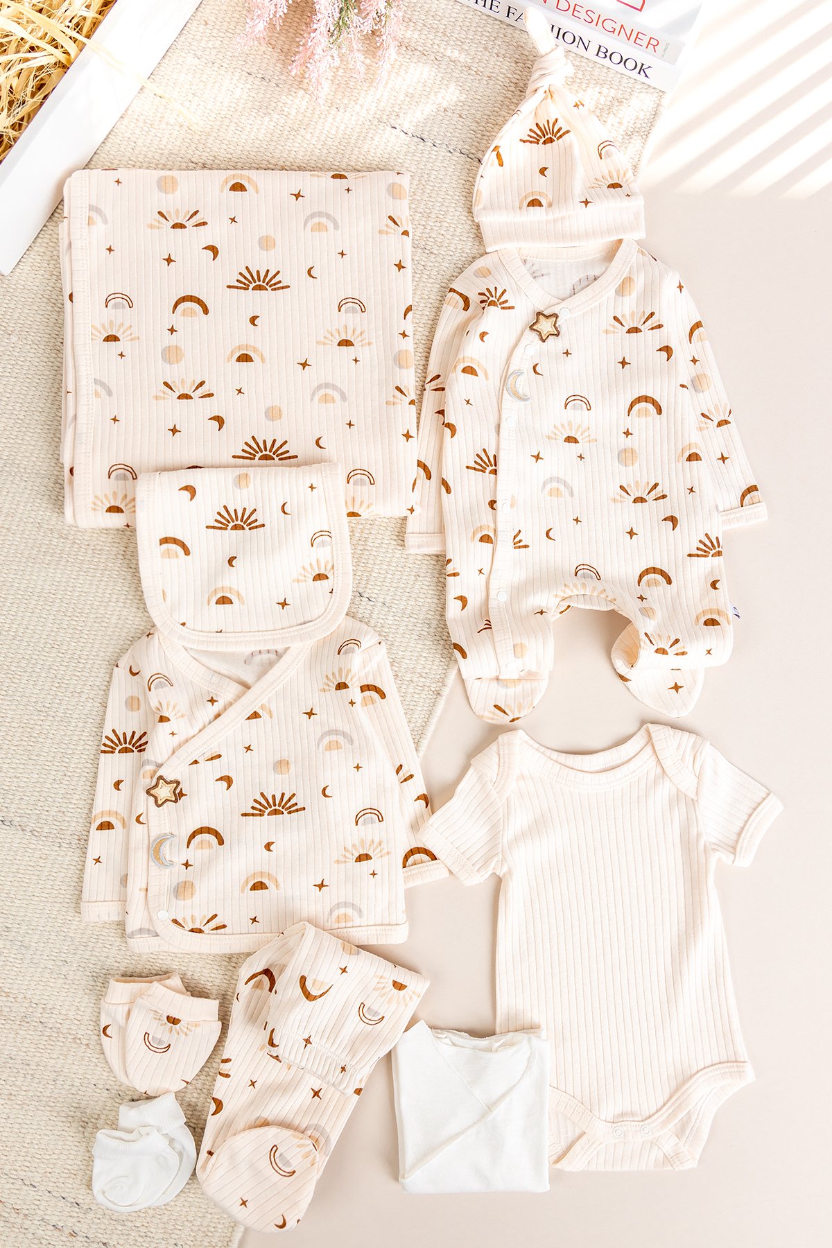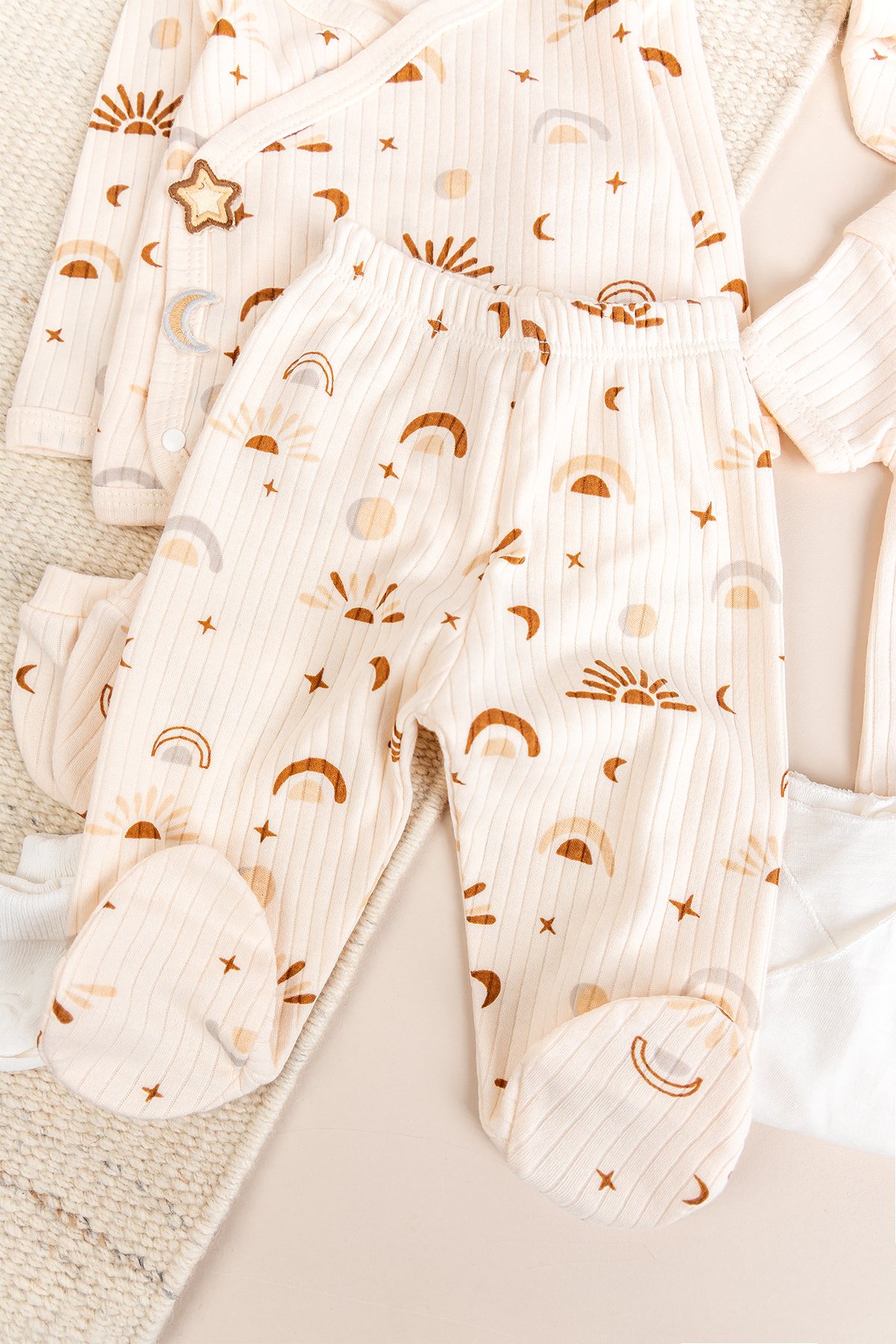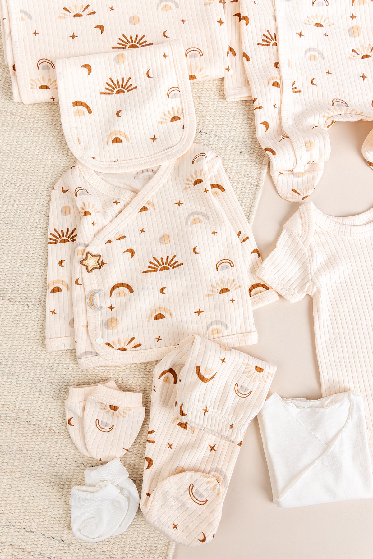 Güneş Temalı Natural 10'lu 100% Pamuk Kız/Erkek Bebek Hastane Çıkışı Yeni Doğan Set