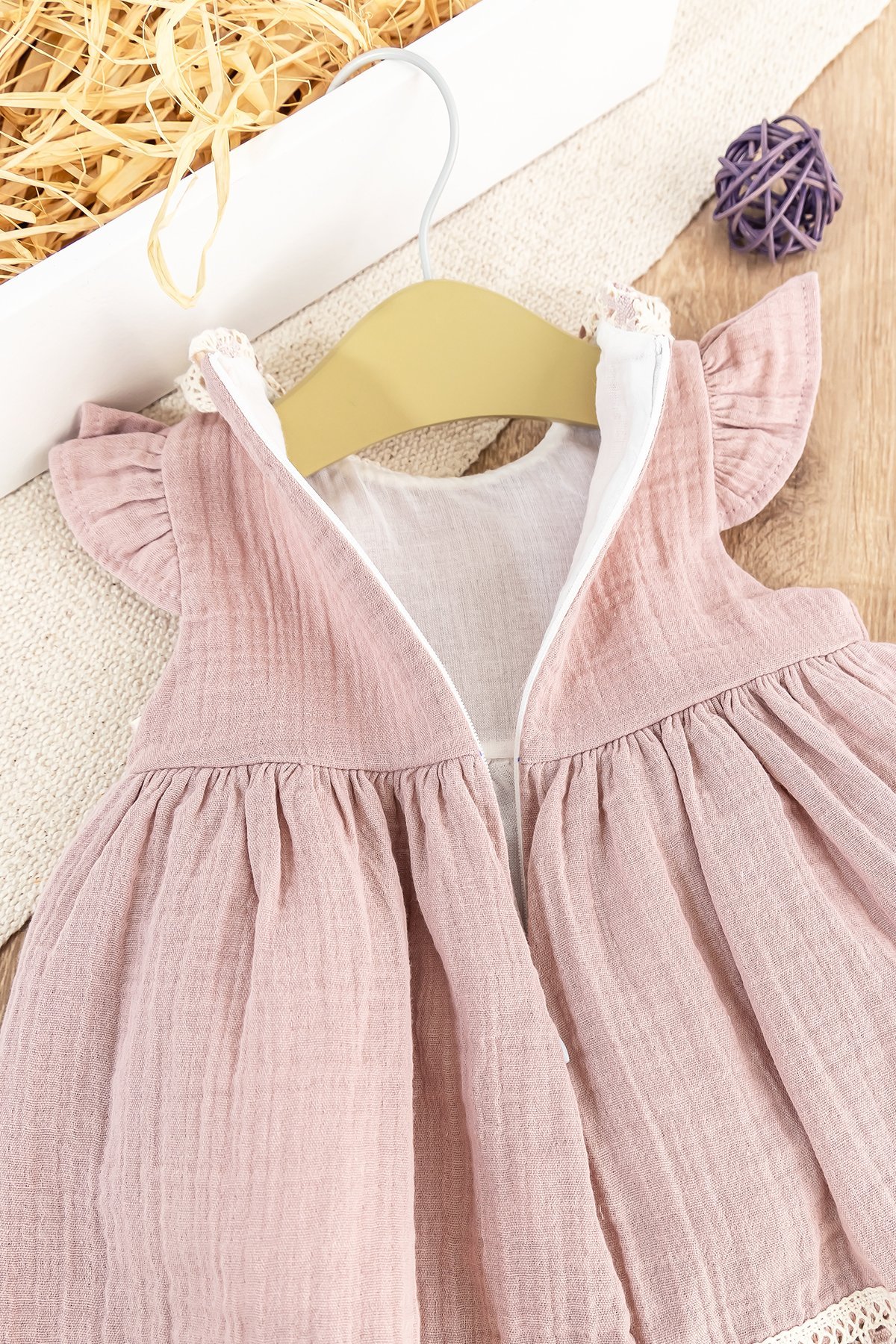 - Bebek elbise soft dokulu pamuklu müslin kumaş ile üretilmiştir.