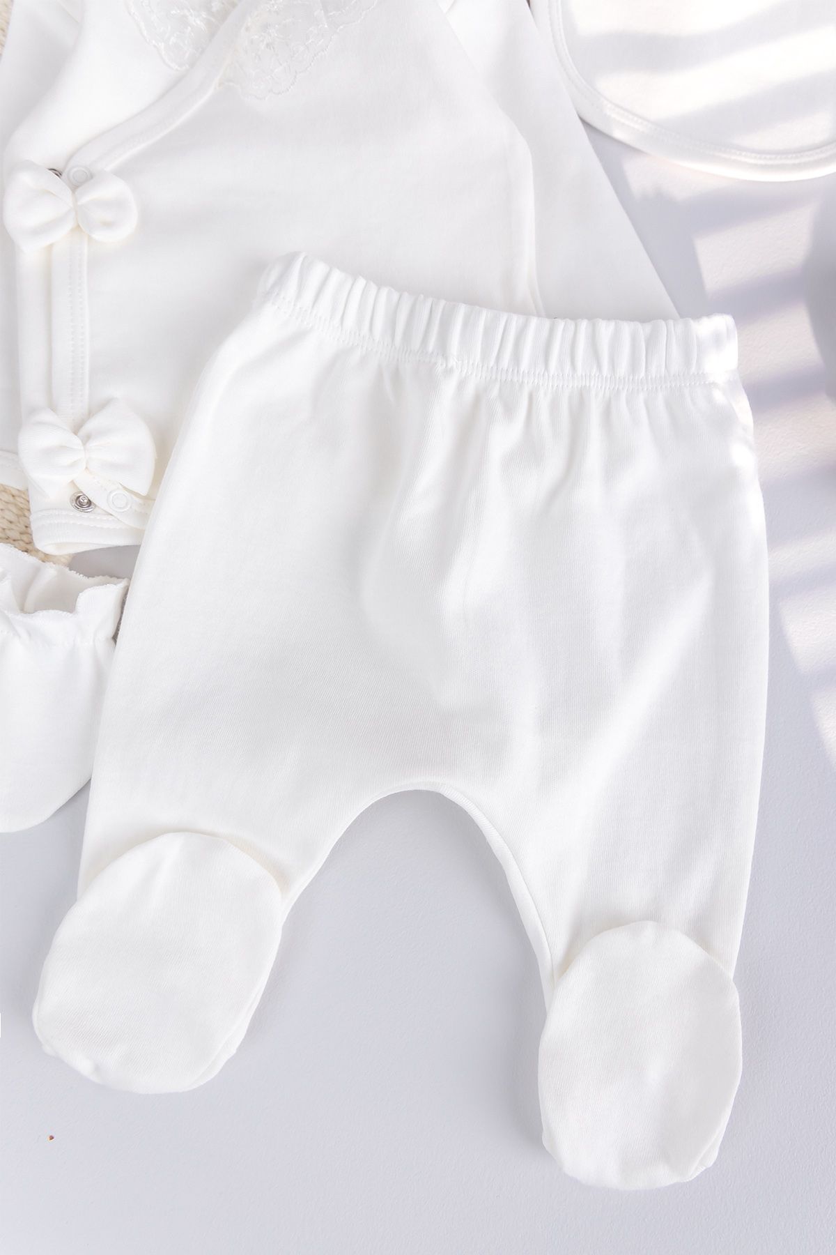 Güpürlü %100 Pamuk 5'li Kız Bebek Hastane Çıkışı Bebek Takım