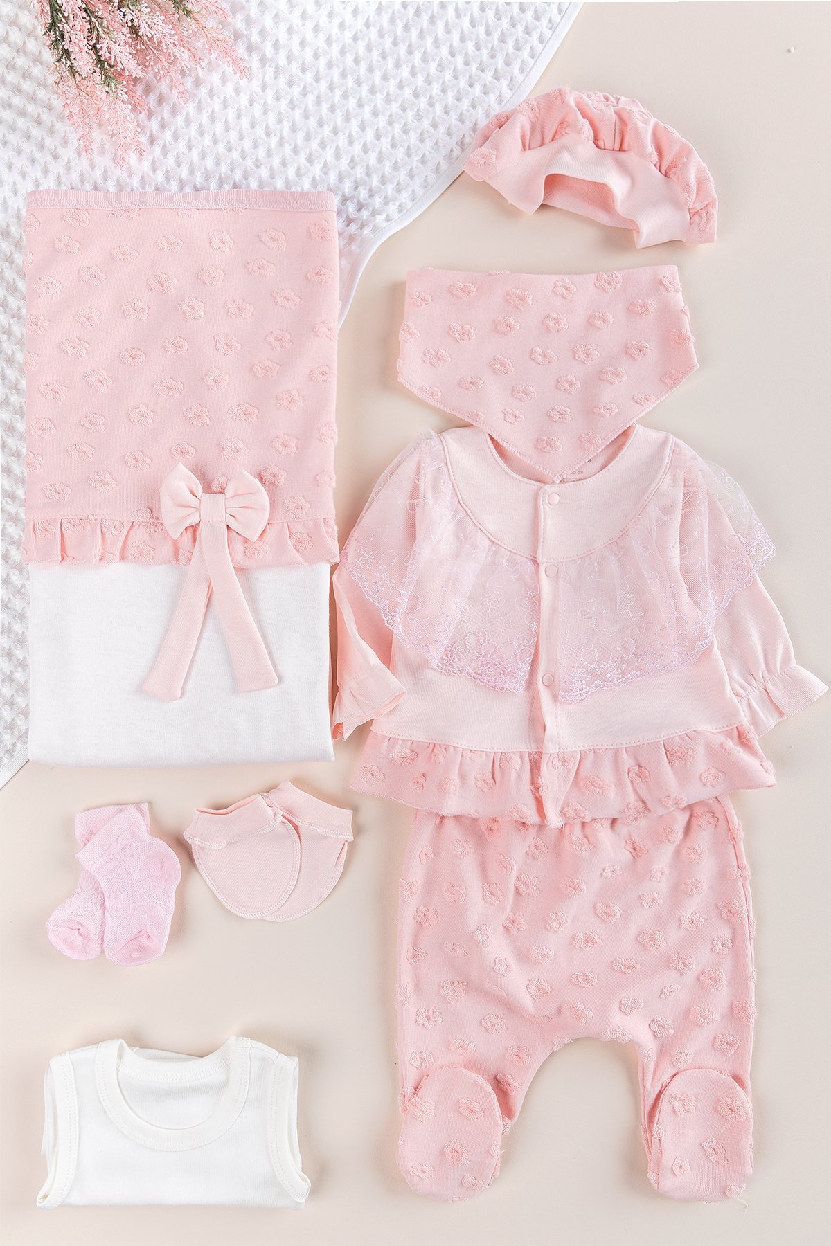 Güpürlü 8'li Kız bebek Hastane Çıkışı Bebek Takımı