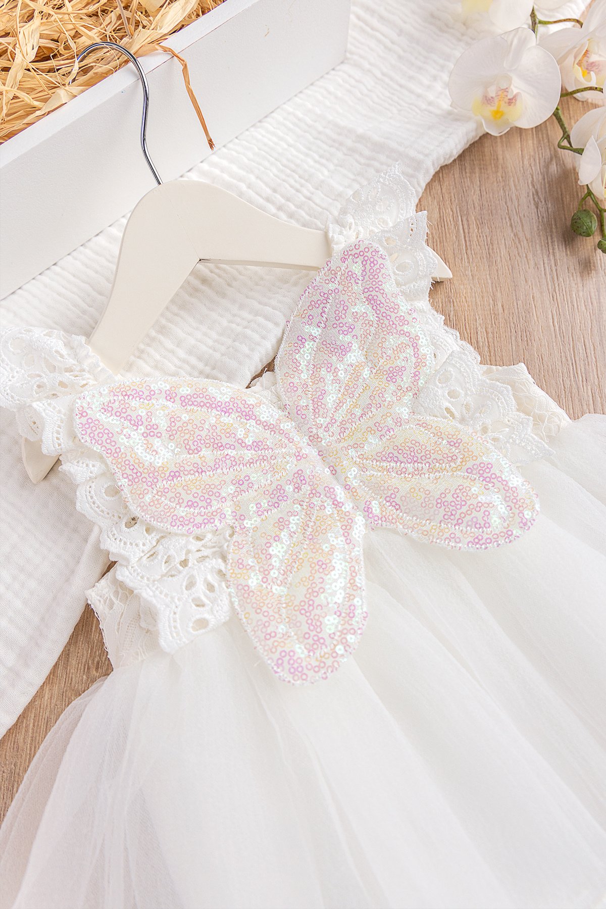 Elbisenin sırt kısmında kelebek süslemesi vardır.