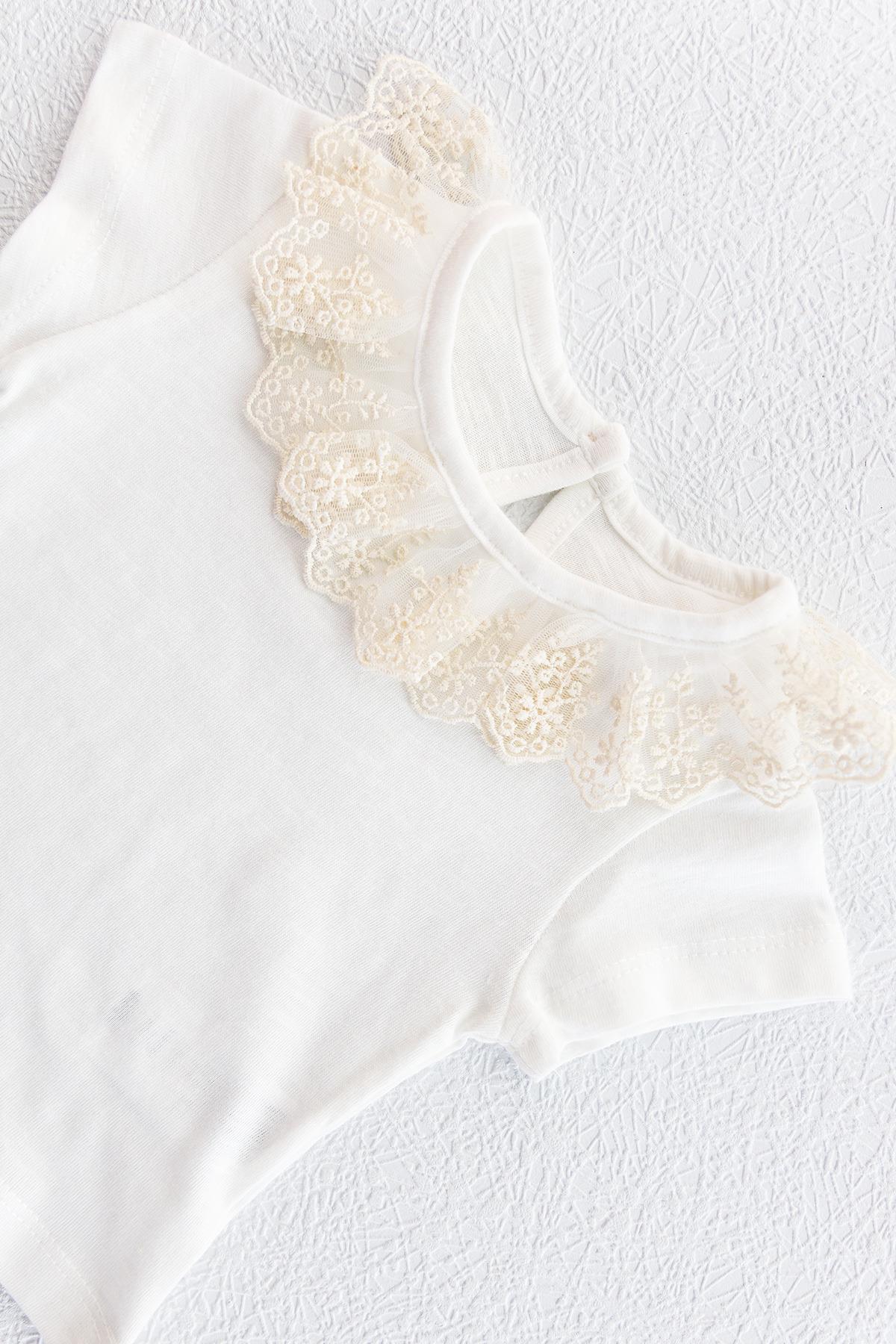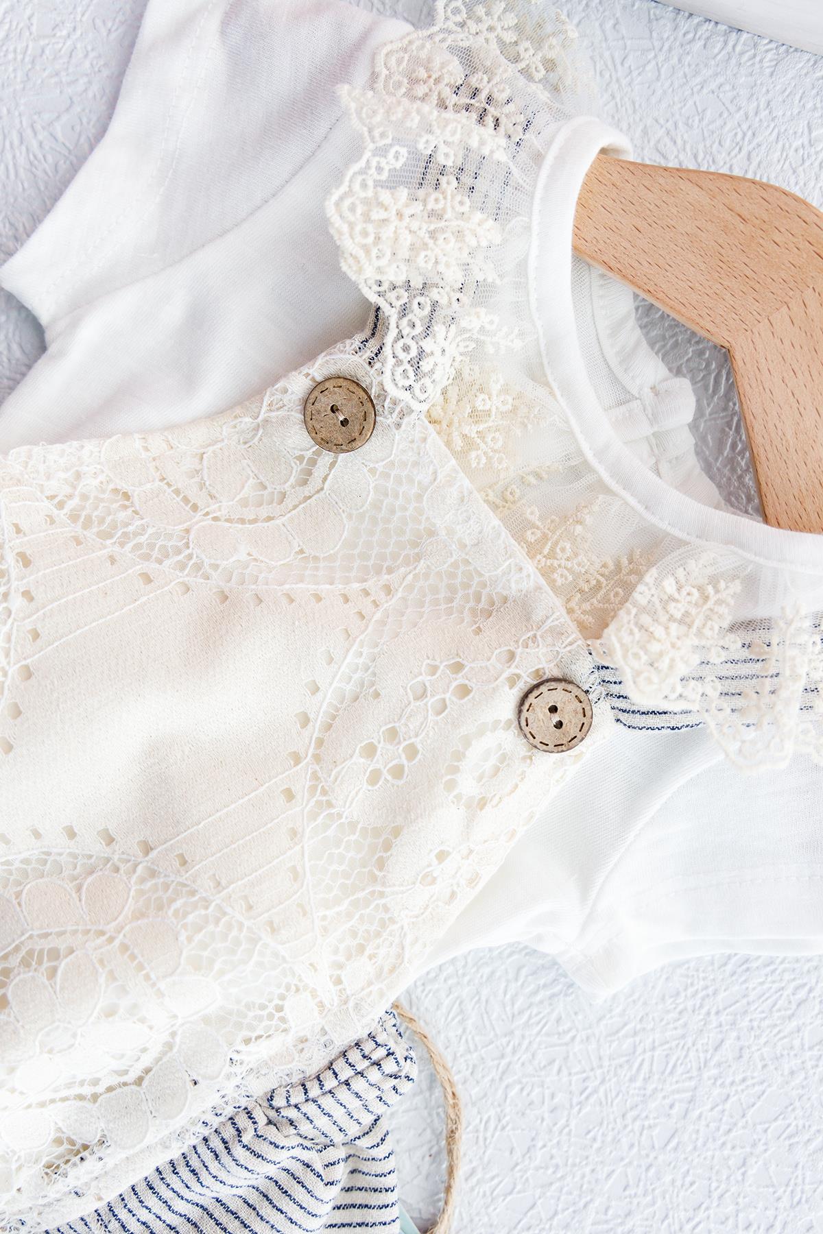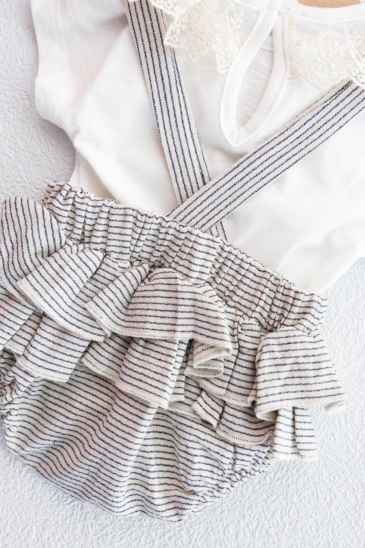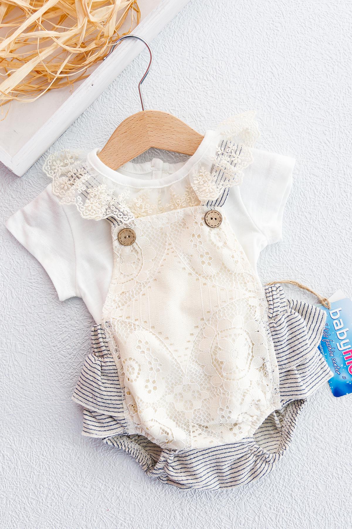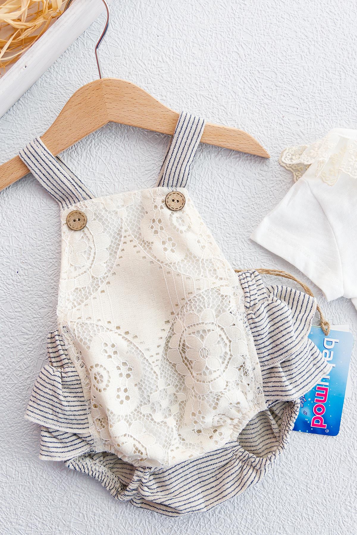 Güpürlü Askılı İkili Kız Bebek Body Tulum Salopet Takım