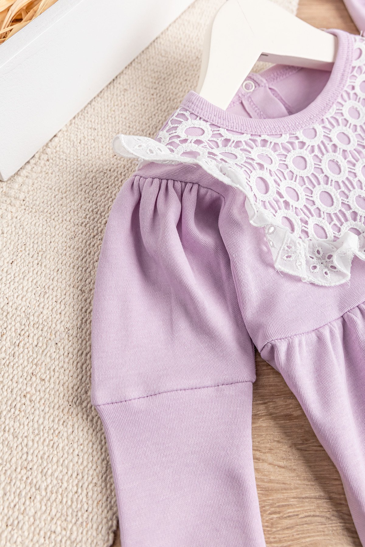 - Bebek body yakası güpür detaylıdır.