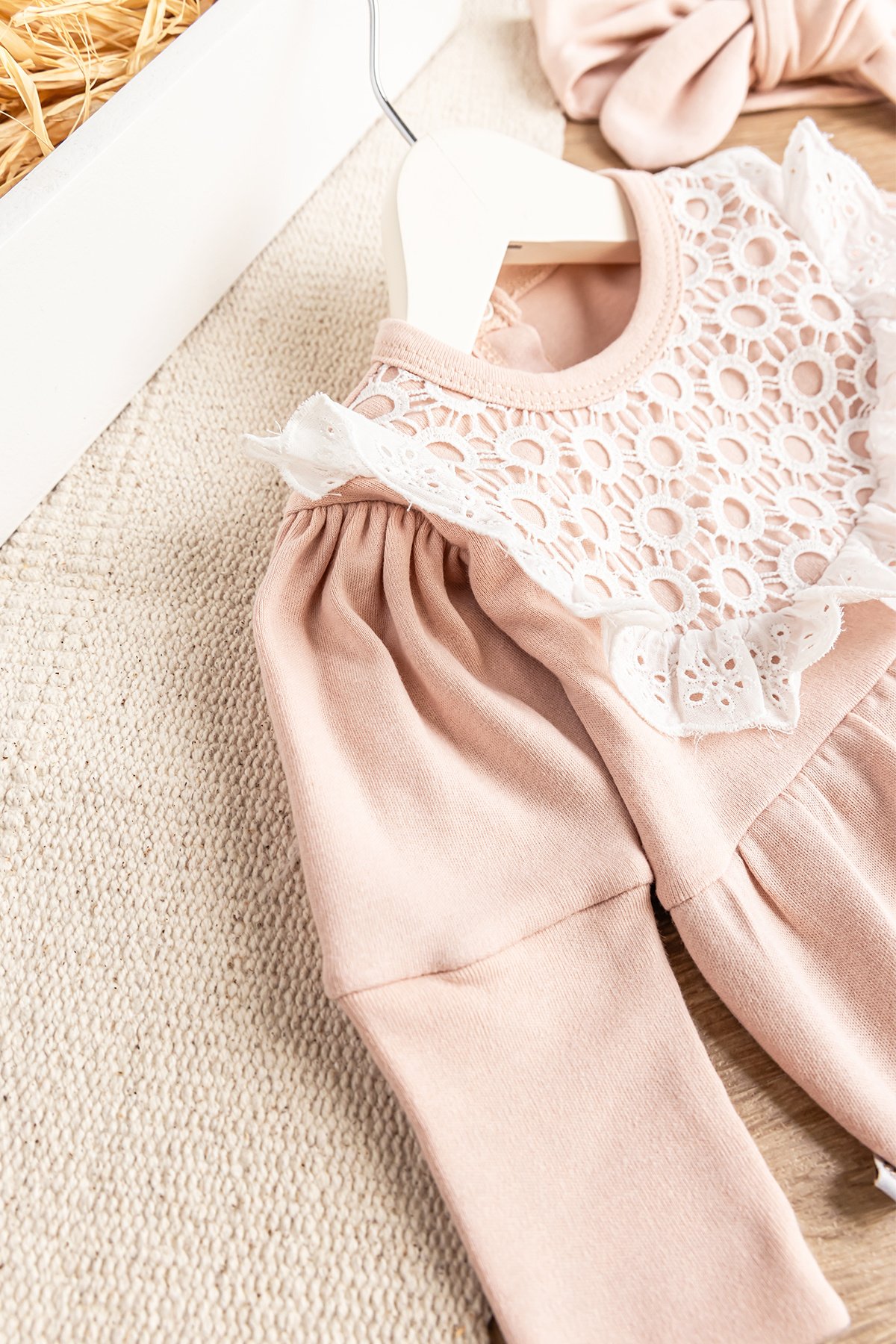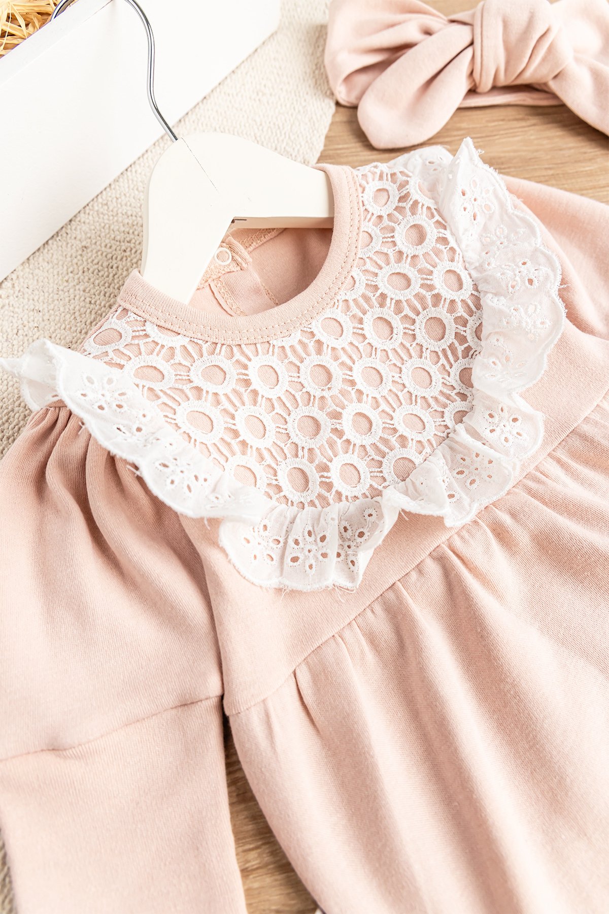 Güpürlü Bandanalı Kız Bebek Tulum Bebek Çıt Çıtlı Body SOMON - 3 Ay