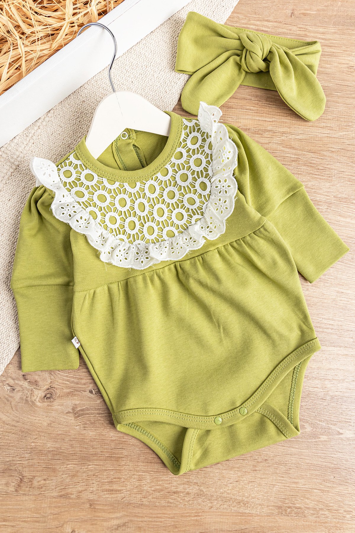 Güpürlü Bandanalı Kız Bebek Tulum Bebek Çıt Çıtlı Body YEŞİL - 6 Ay