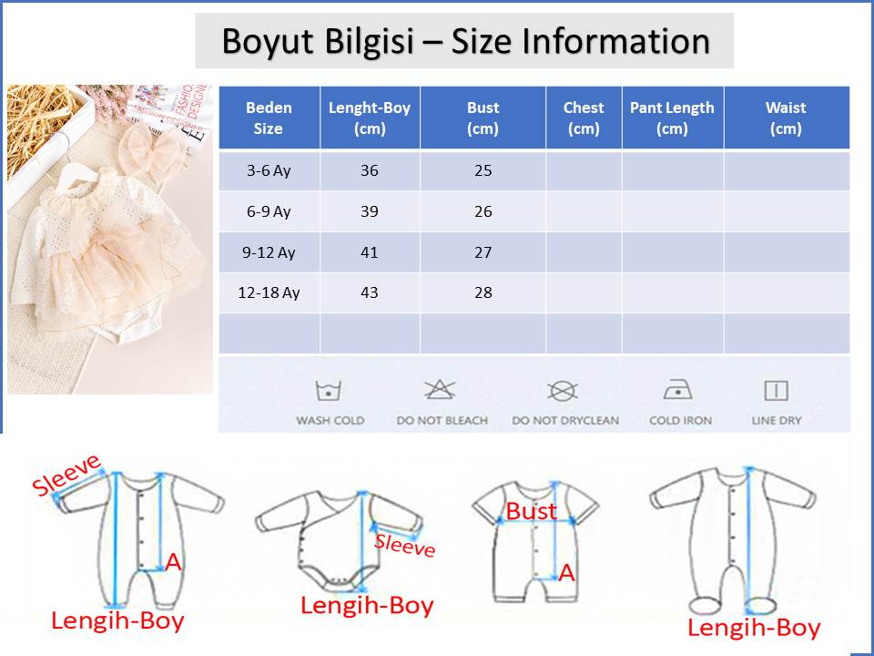 - Bebek elbise sırttan düğme kapamalı modeldir