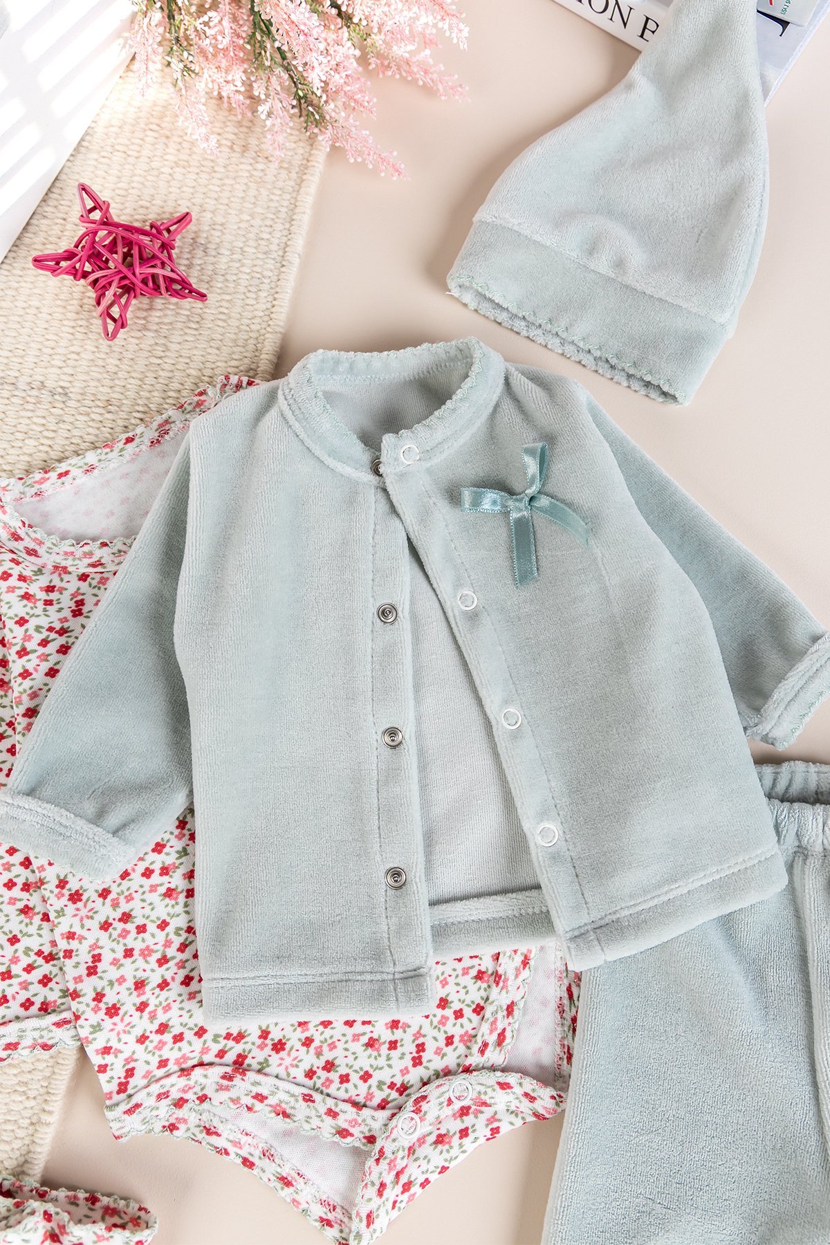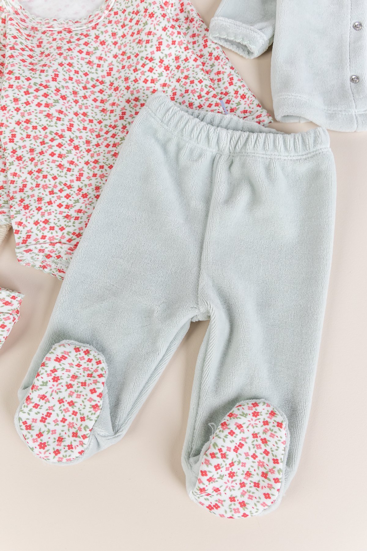 - Kız bebek takım yumuşak dokulu kadife kumaştan üretilmiştir