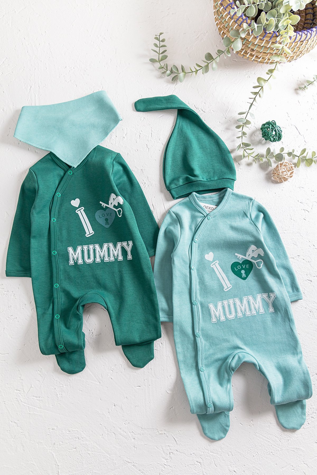 - Bebek tulumun ön kısmı ı love mummy baskılıdır.