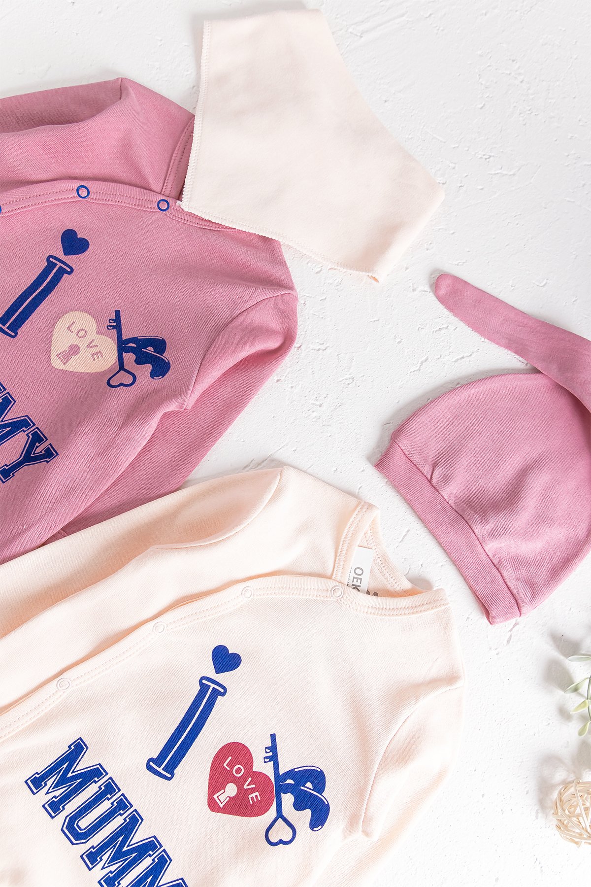 I Love Mummy Baskılı 2'li Uzun Kollu Kız/Erkek Bebek Tulum Takım PEMBE - 3-6 AY