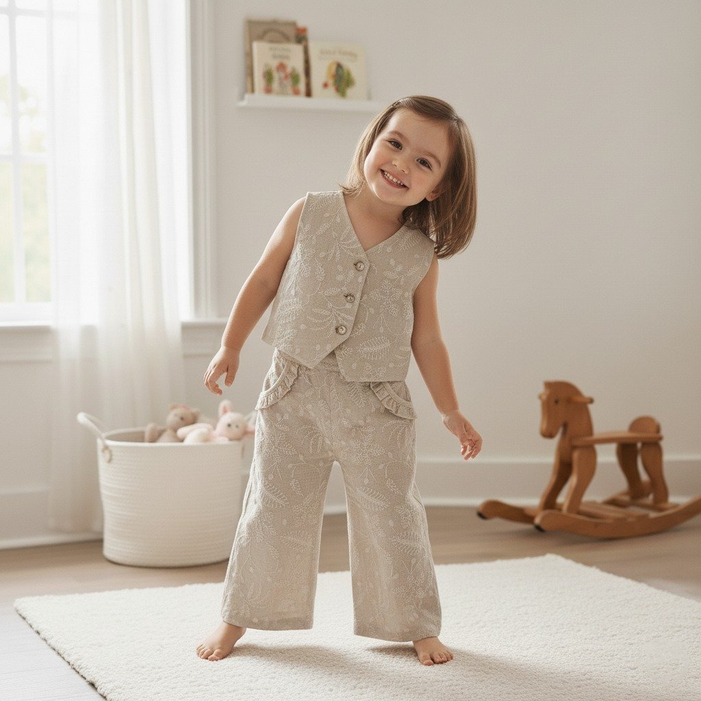 Çok Yönlü Kullanım: Mevsim geçişlerinde kurtarıcı olan bu yelekli set, hem doğum günü gibi özel davetlerde hem de günlük gezmelerde rahatlıkla tercih edilebilir.