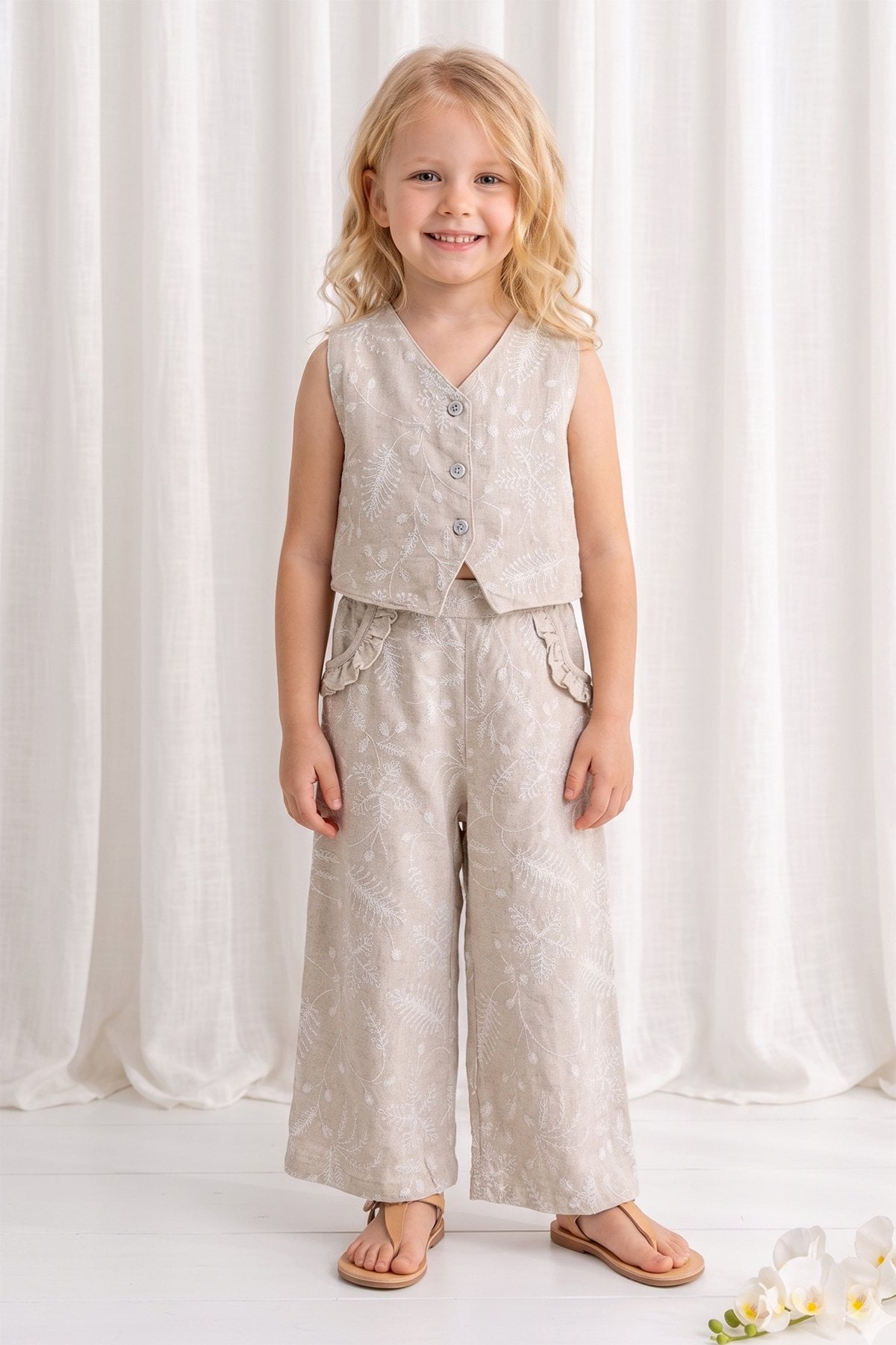 - Kız çocuk yelekli takım yumuşak dokulu kumaştan üretilmiştir