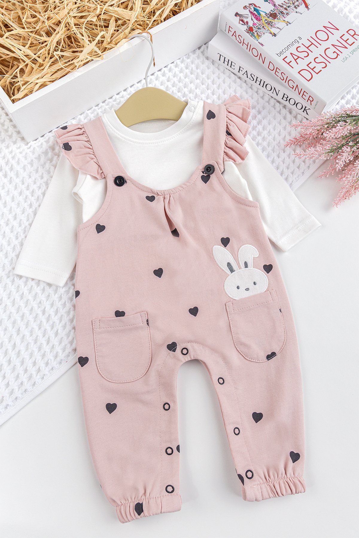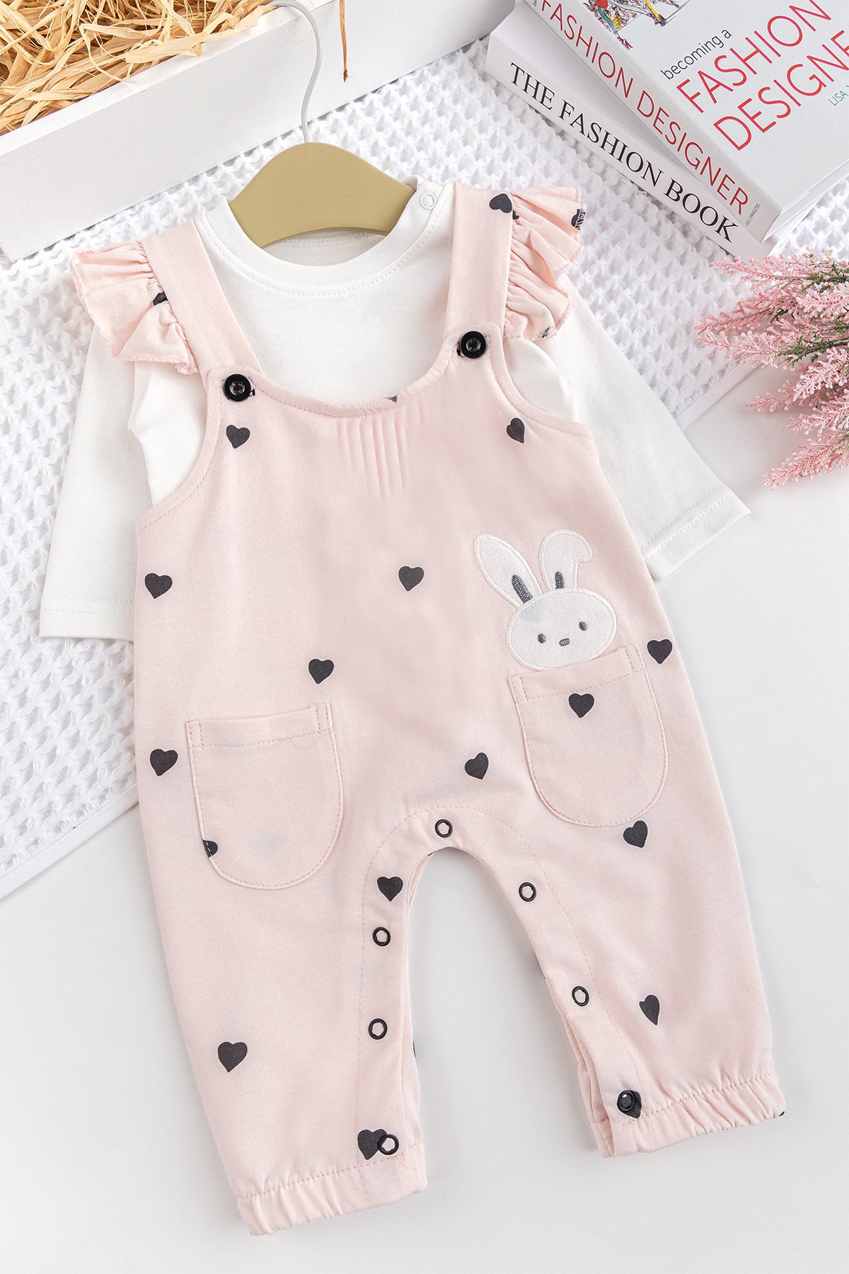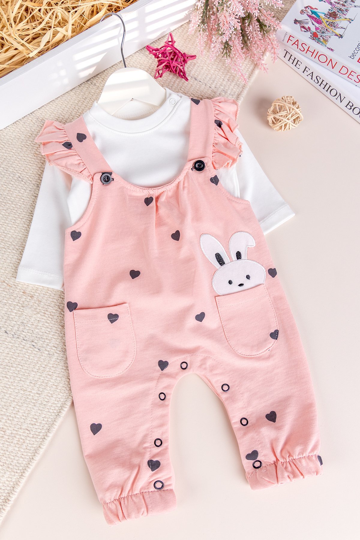 Babymod Heart Patterned Ruffle 100% Cotton Baby Girl Combed Cotton Overalls Overalls Set