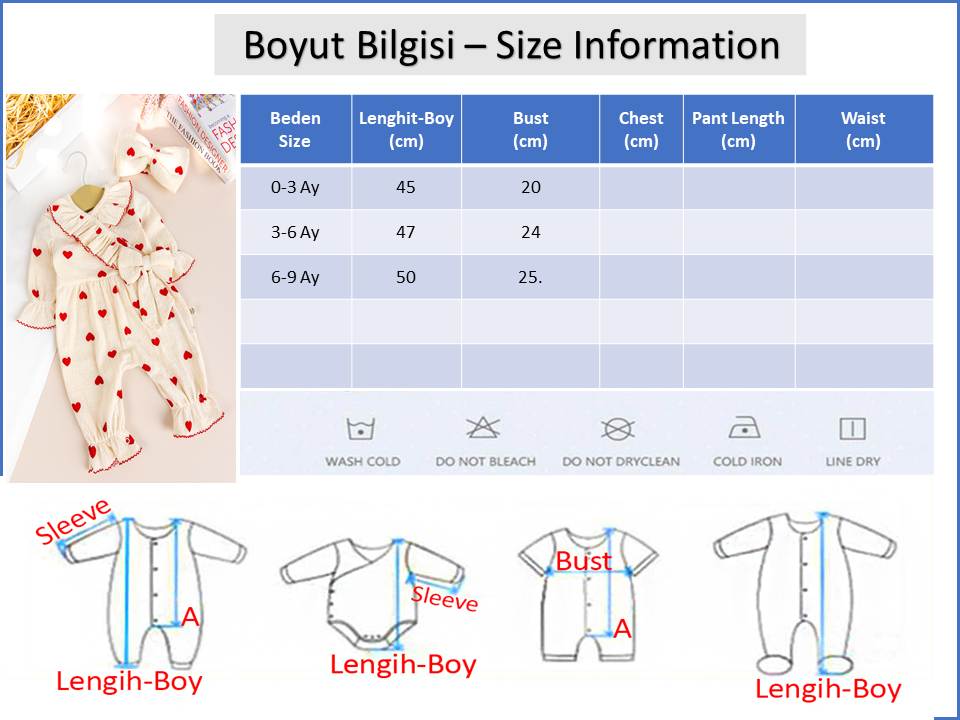 - Kız bebek tulum yumuşak dokulu esnek penye kumaştan üretilmiştir