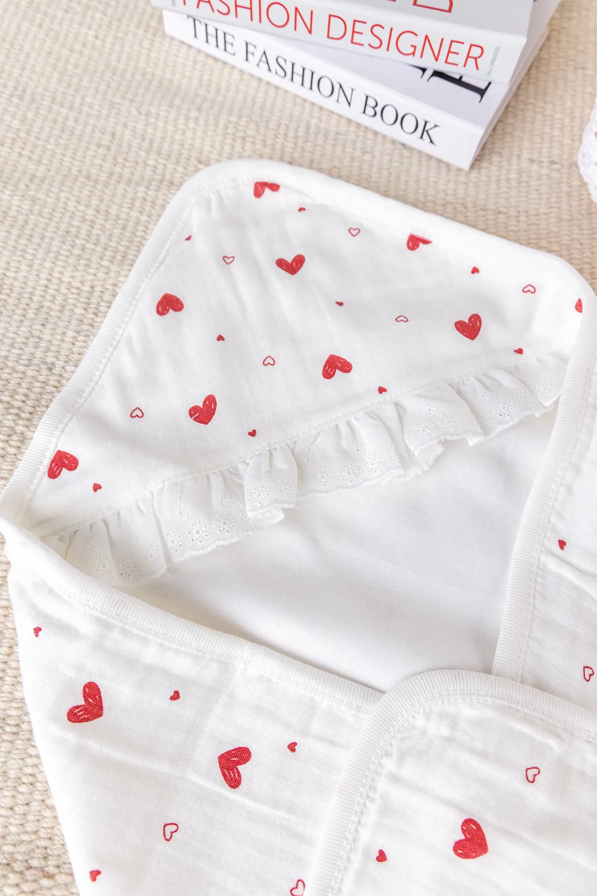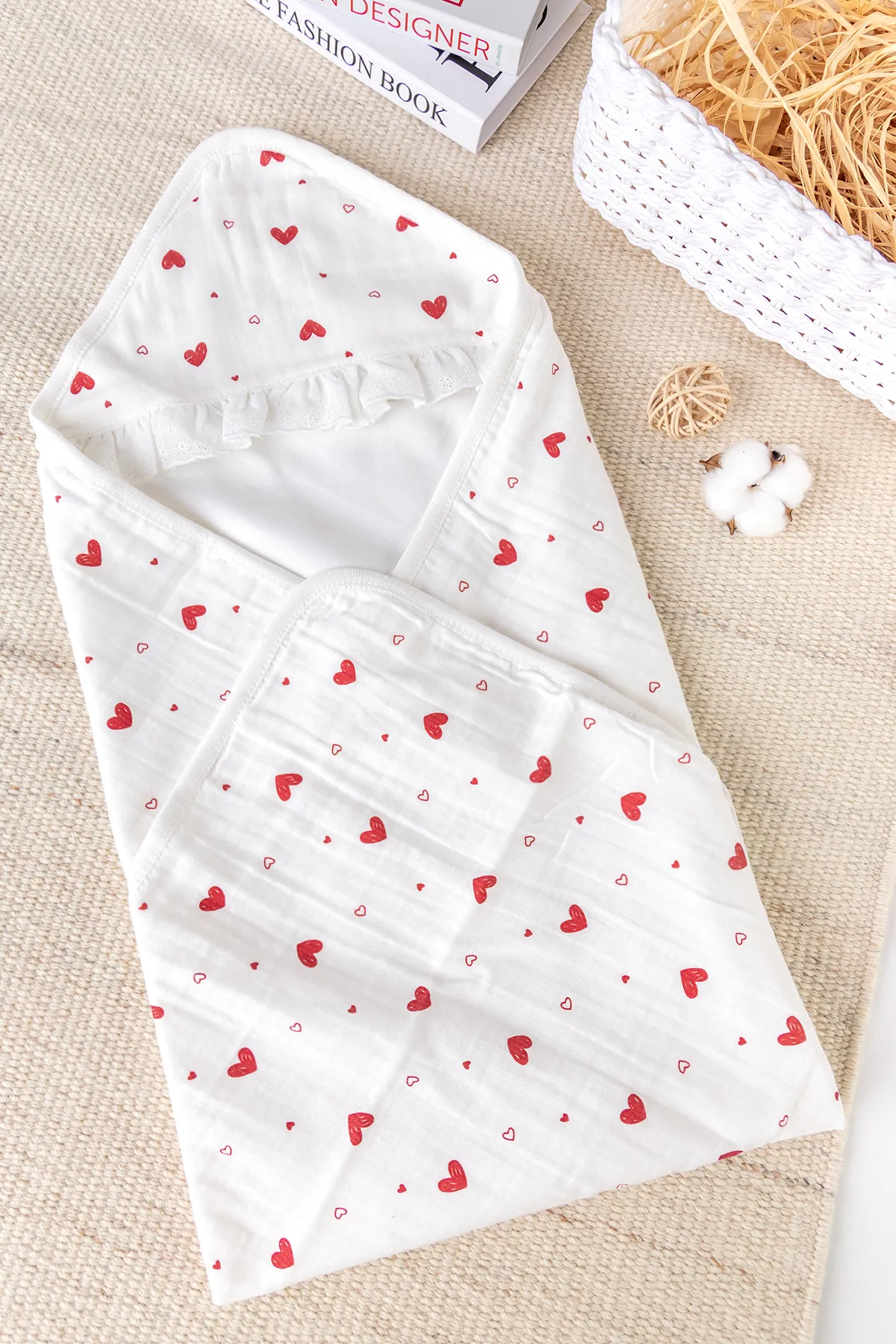 Offering both elegance and comfort together in the most special moments of your newborn baby, the Heart Patterned 10-Piece Girl Baby Hospital Discharge Set provides a soft touch to your baby's sensitive skin with its elegant design and 100% cotton muslin fabric.
