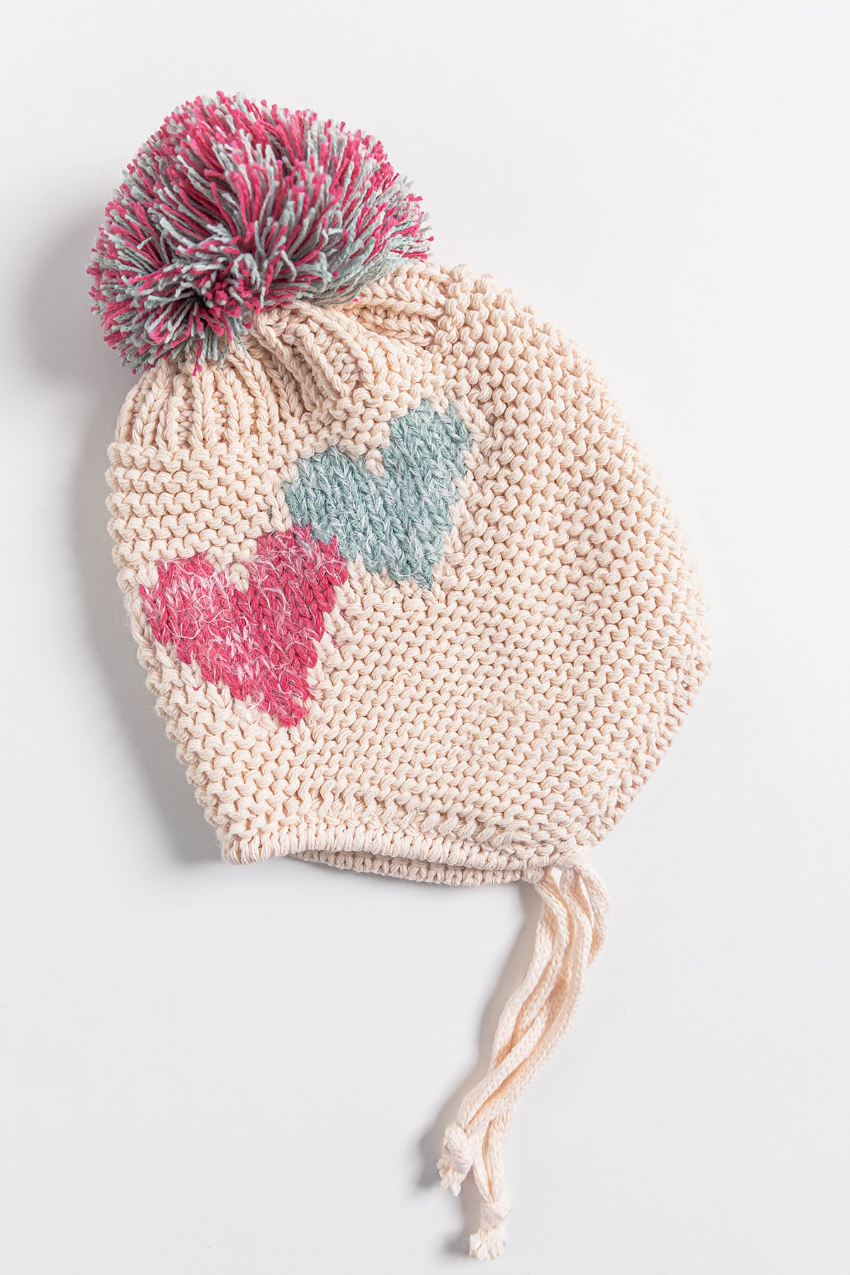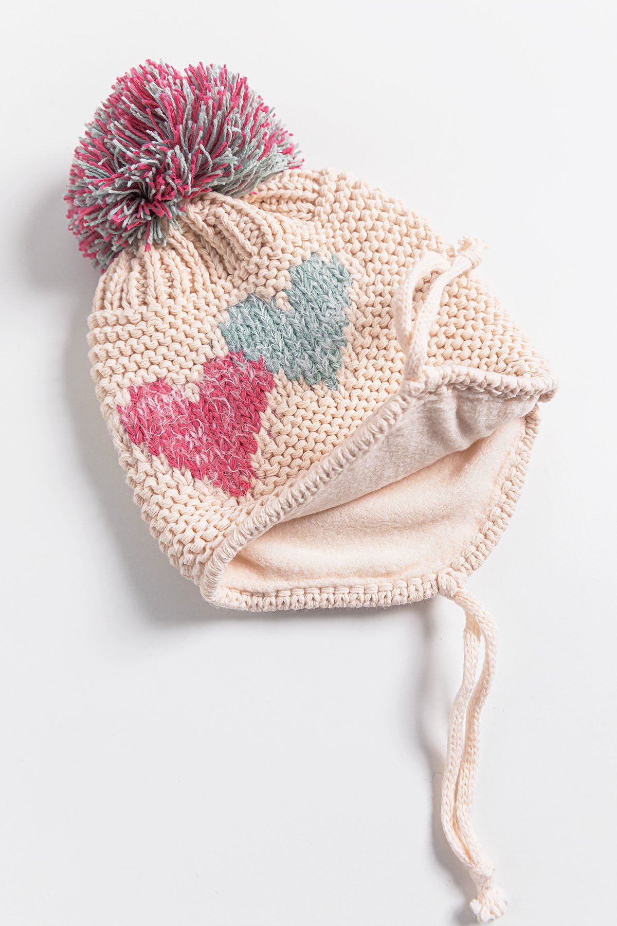 Babymod Heart Patterned Pompom 0-18 Month Baby Girl Beanie