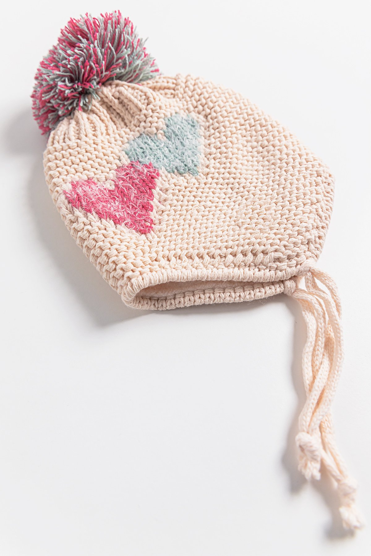 Kalp Desenli Ponponlu 0-18 Ay Kız Bebek Bere PUDRA - 0-18 Ay