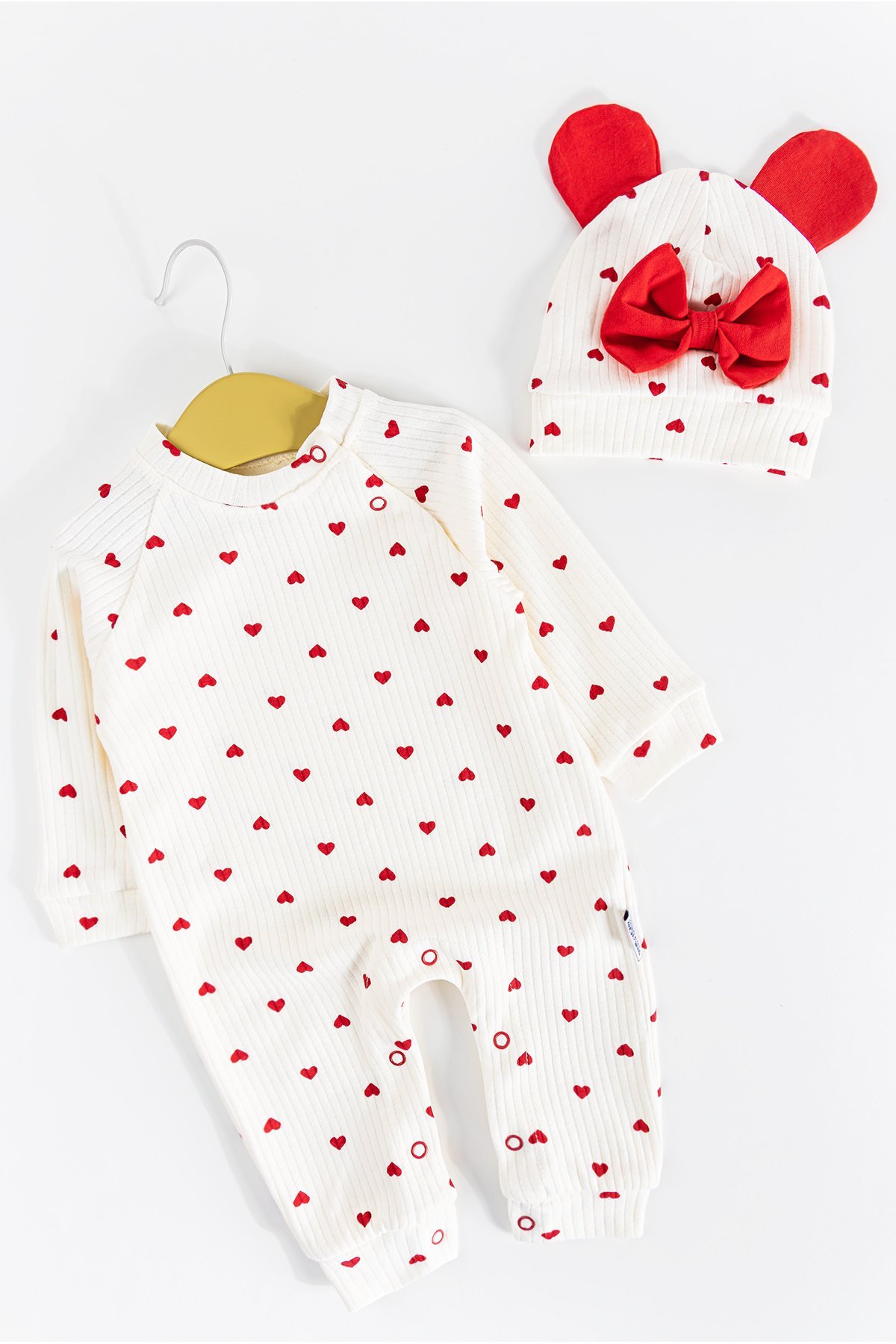 Babymod Heart Patterned Hat and Baby Girl Rompers