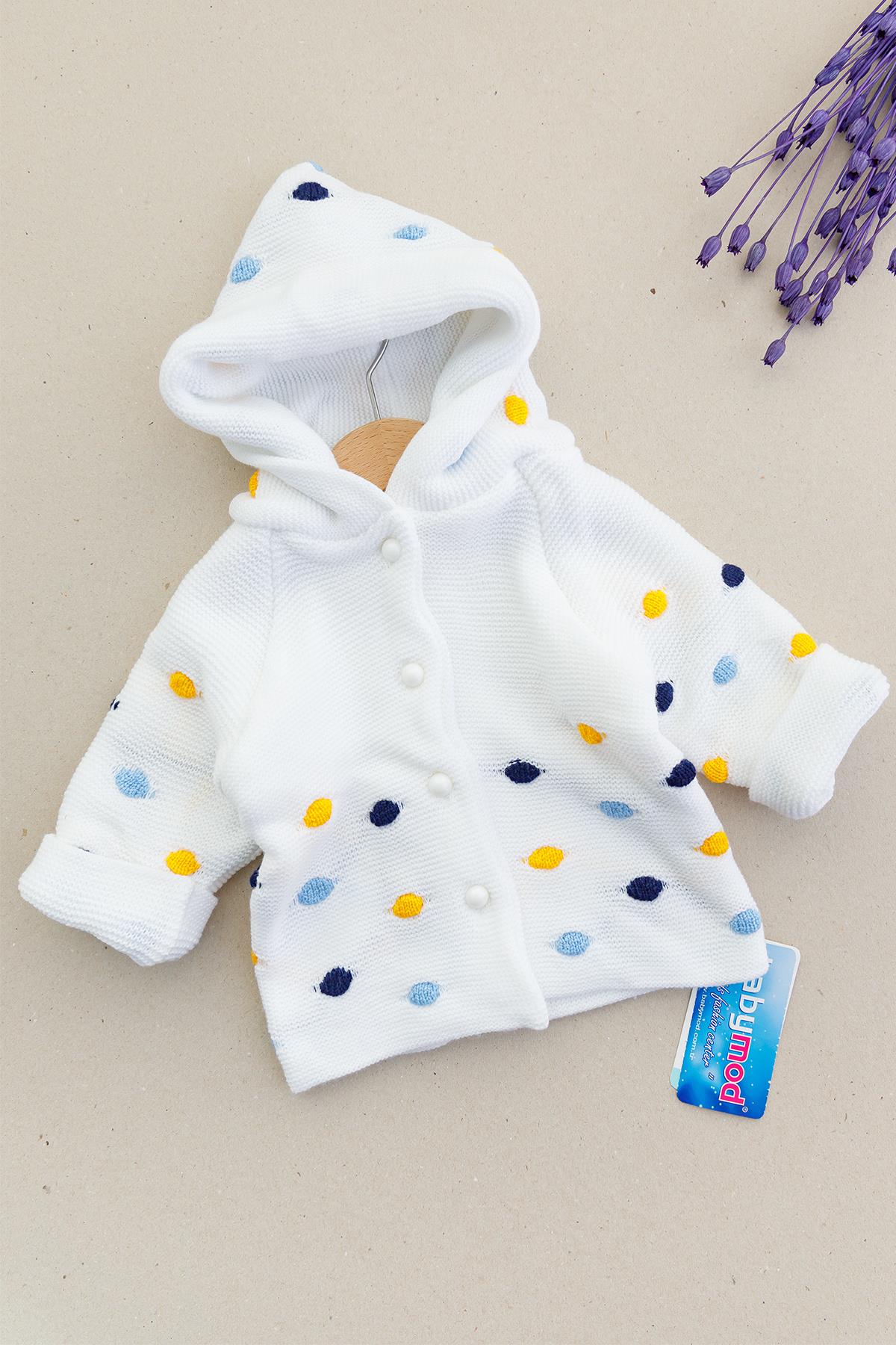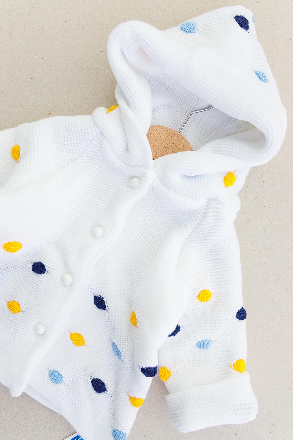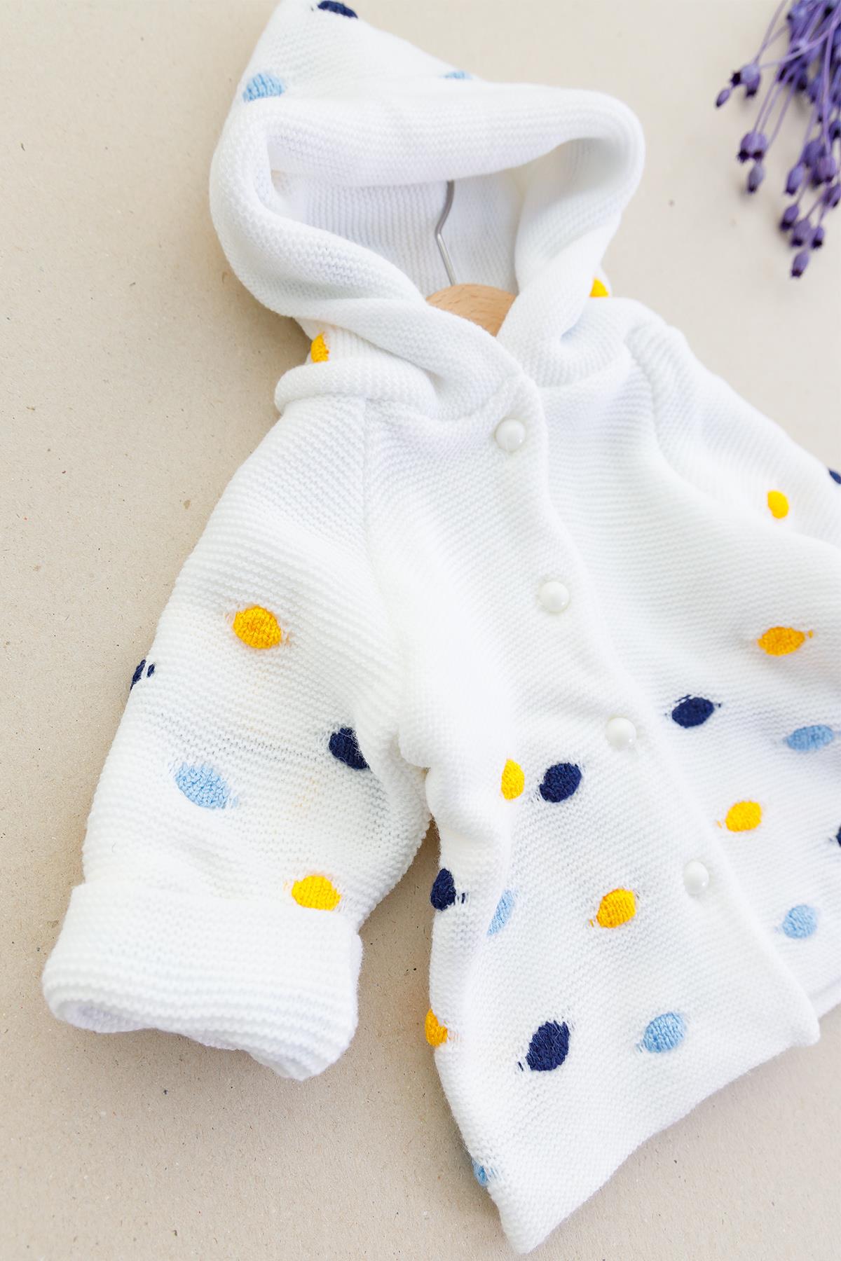 Kapüşonlu Çift Katlı Triko Erkek Bebek Hırka BEYAZ - 6-9 AY
